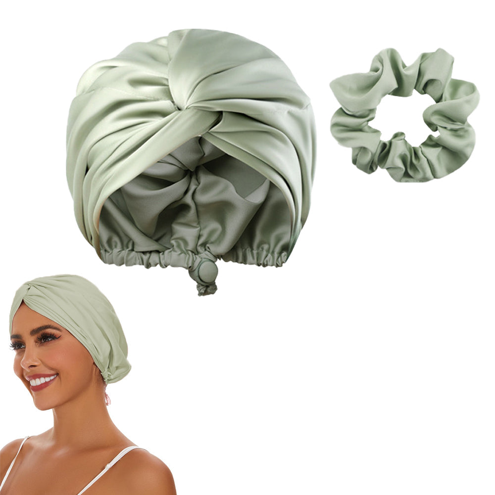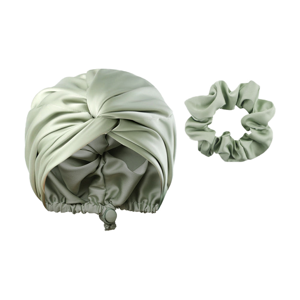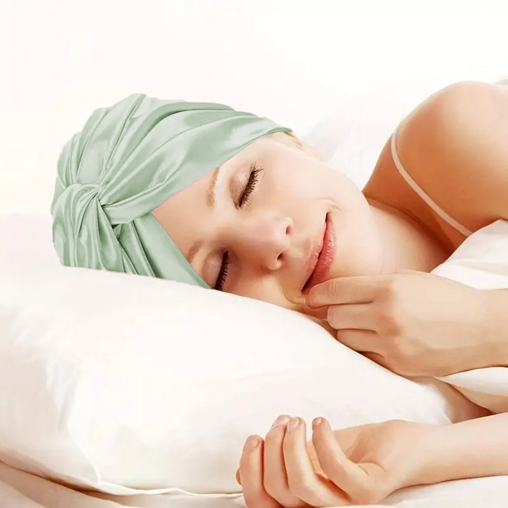 Adjustable Satin Hair Bonnet Sleeping Night Cap Hair Wrap Turban Green