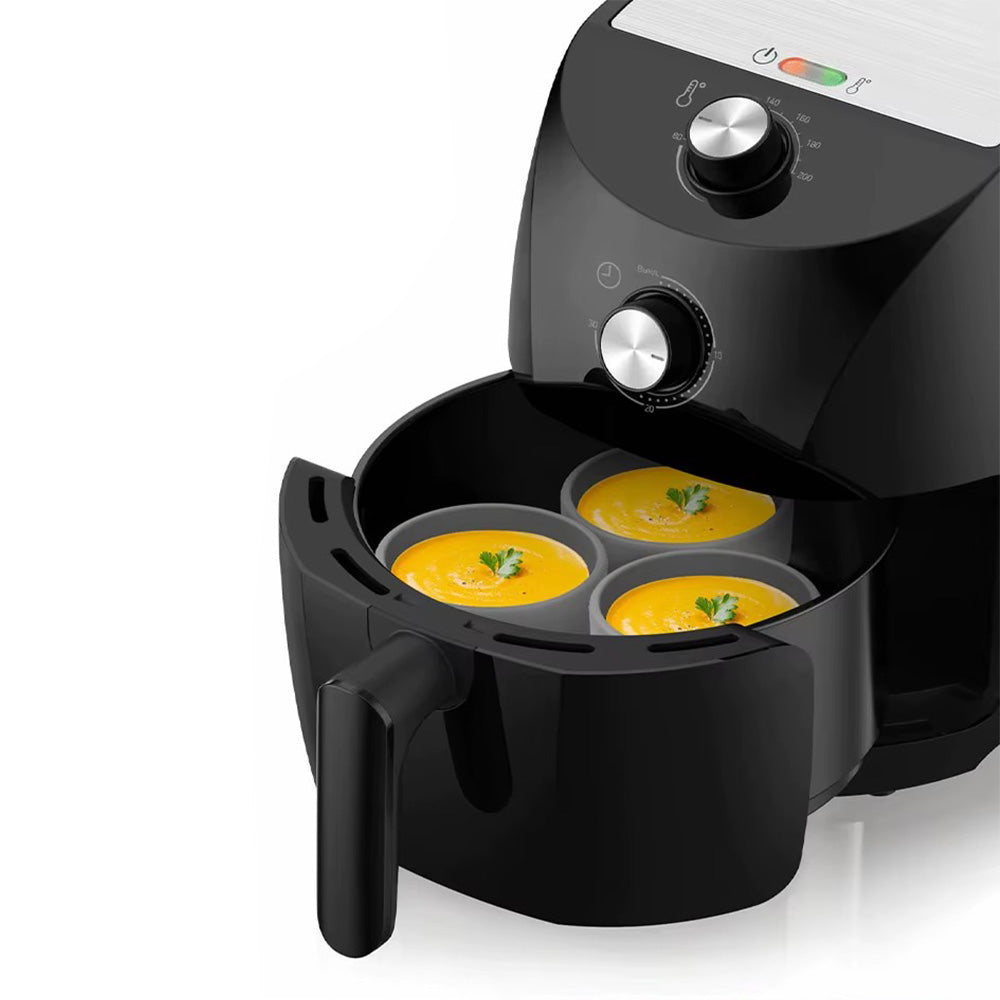 - The air fryer egg pans are made of silicone material, it is soft and durable.