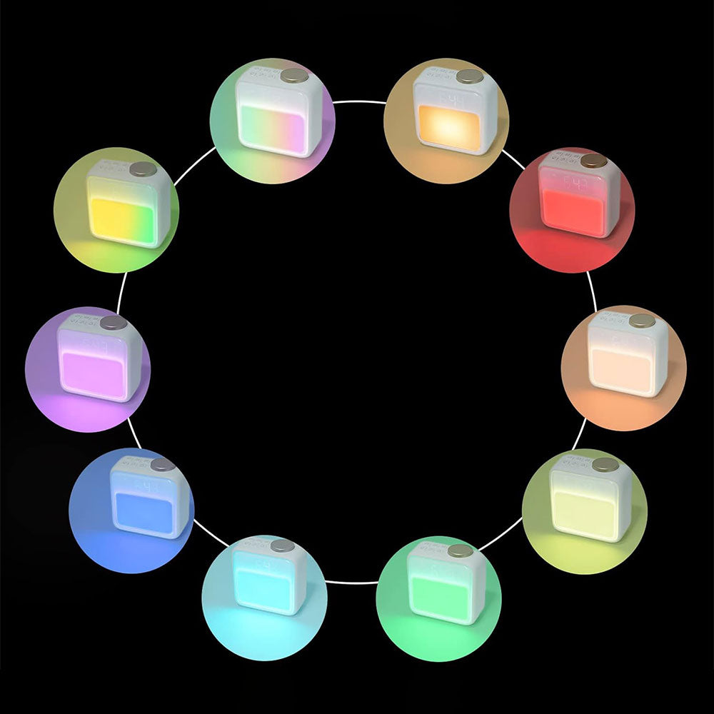 Alarm Clock with RGB Night Light Rechargeable Digital Clock with White Noise Sync