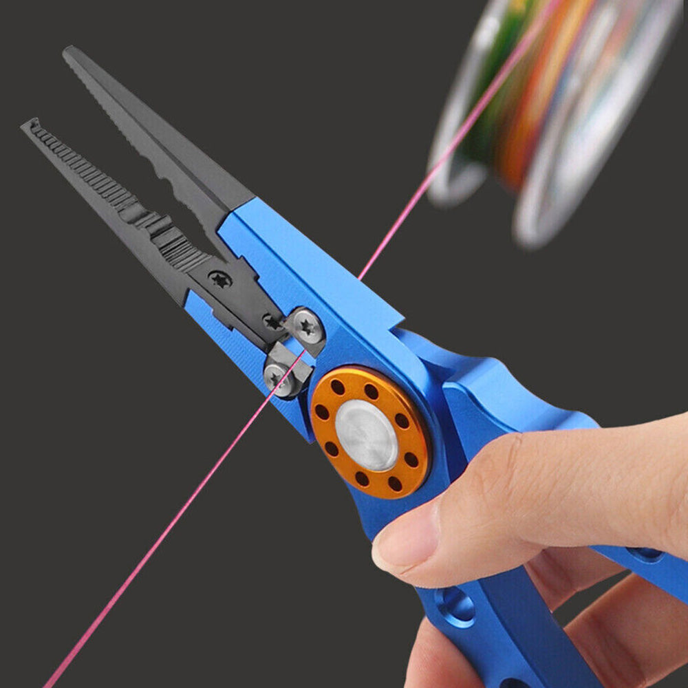 Aluminium Fishing Pliers Hook Remover Line Cutting Mono Braid Fish Gripper Blue
