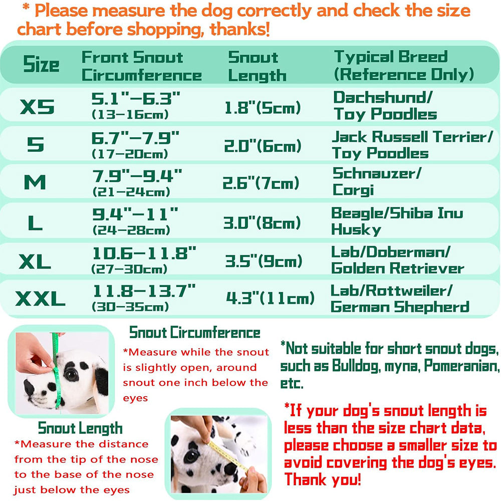 - Before making a purchase, measure your dog's snout circumference and length to ensure the right fit.