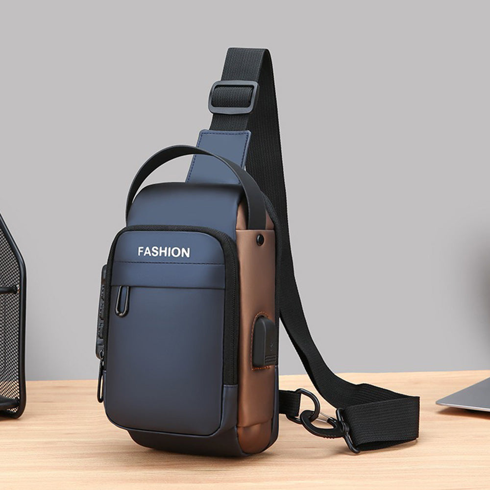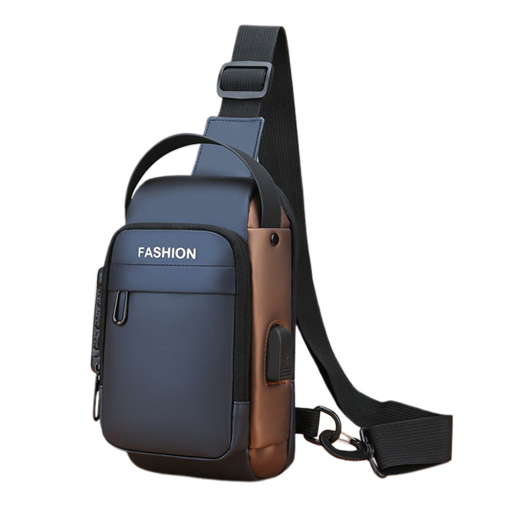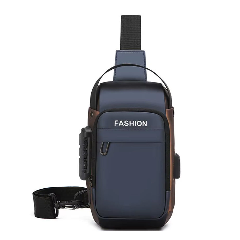 Anti-theft Crossbody Bag for Mern Password Sling Chest Pack with USB Port Blue