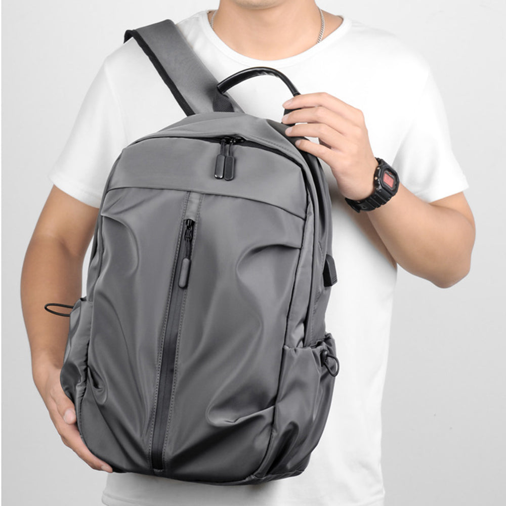 Anti-theft Unisex Laptop Oxford Backpack Travel School Bag with USB Charging Port Grey