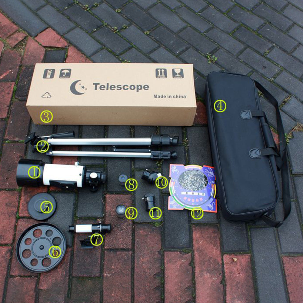 The astronomical telescope features a high-quality tripod, a zenith mirror for comfortable overhead viewing, and a 3X Barlow lens for enhanced magnification, offering a superior stargazing experience.