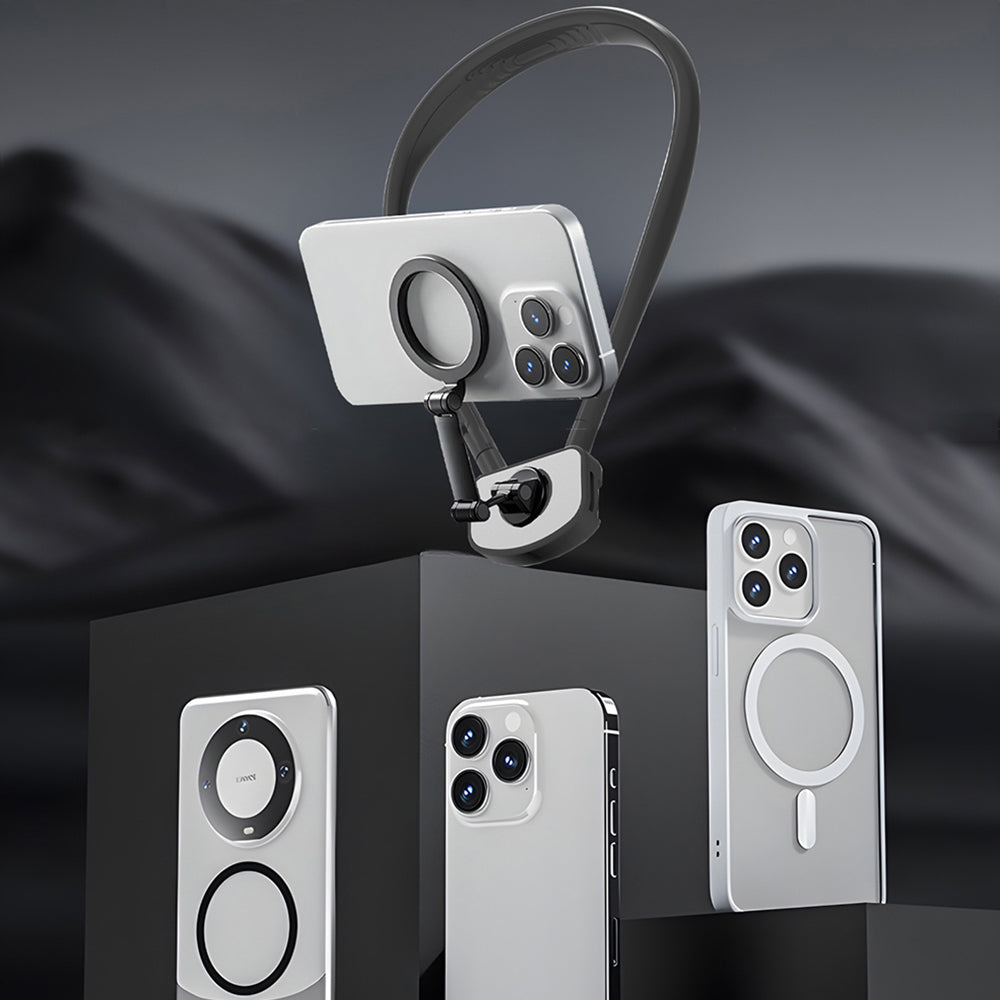 Attractive Force Neck Mount Phone Holder for Recording Hands Free Phone Stand for POV/Vlog Video Filming Black