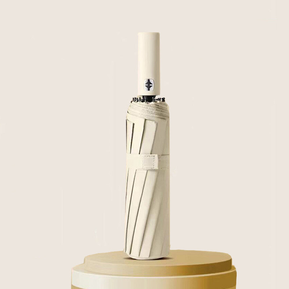Automatic Folding Umbrella UV Protection Sun Umbrella with Safe Reflective Stripe Beige
