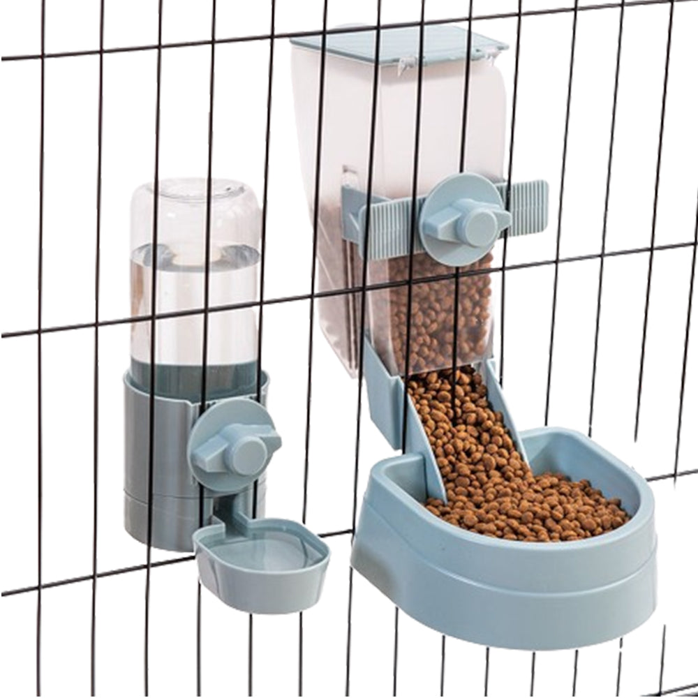 Automatic Food Water Dispenser Set Pet Feeder Bowl Set for Cage Light Blue
