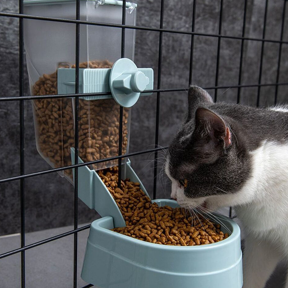 The hanging automatic pet feeder and the water dispenser utilize the siphon principle, providing a friendly solution for convenient and straightforward pet feeding.