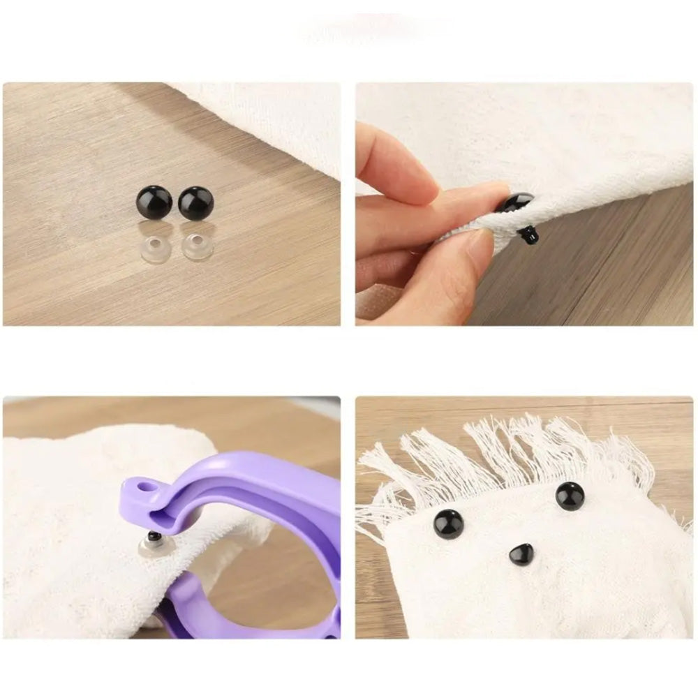 This tool allows you to easily and quickly install security eyes on plush toys, reducing hand fatigue during the installation process and ensuring that security eyes are attached quickly and securely, making your crafting more efficient and effortless.