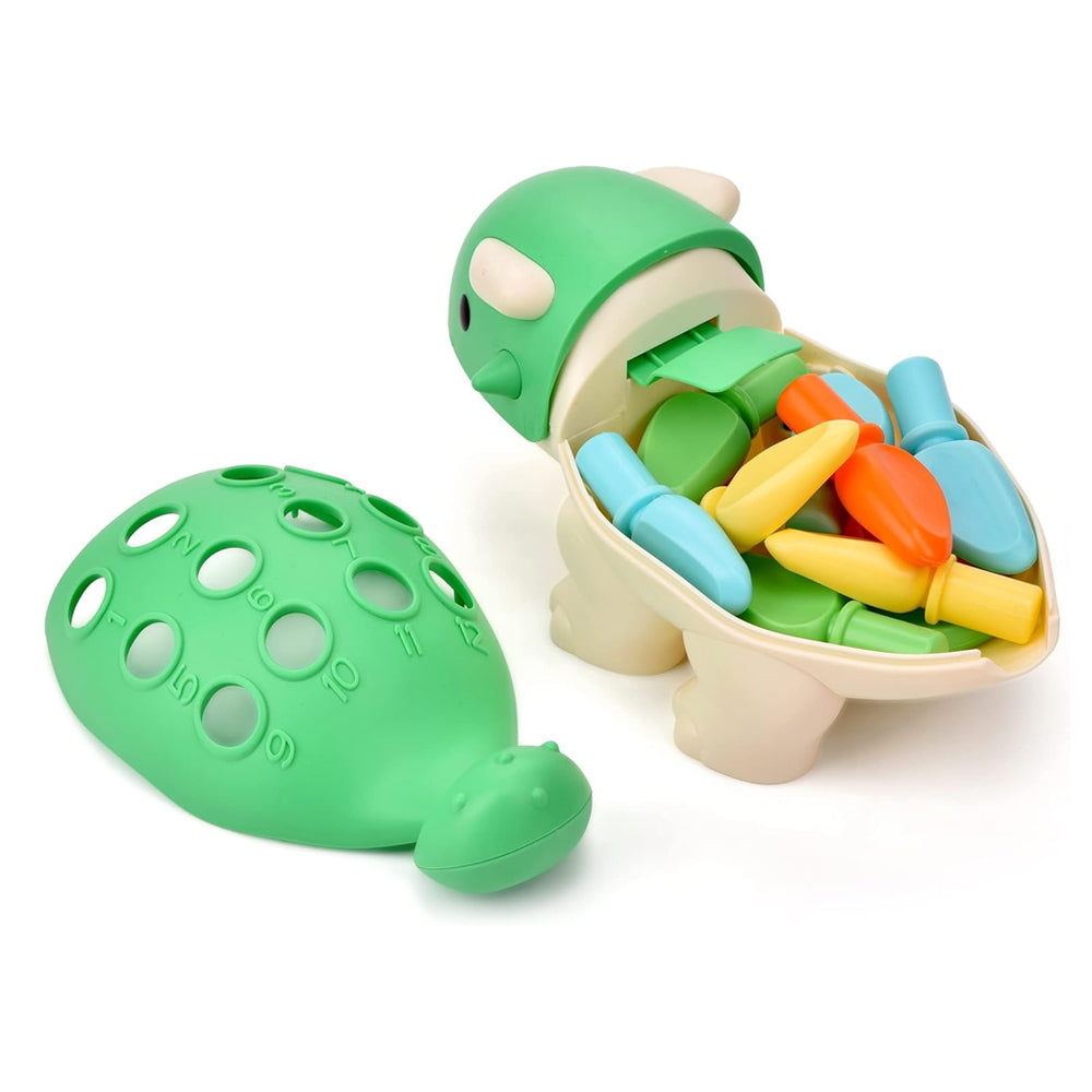 - The dinosaur's back is removable for easy storage, you can place all the pegs inside
