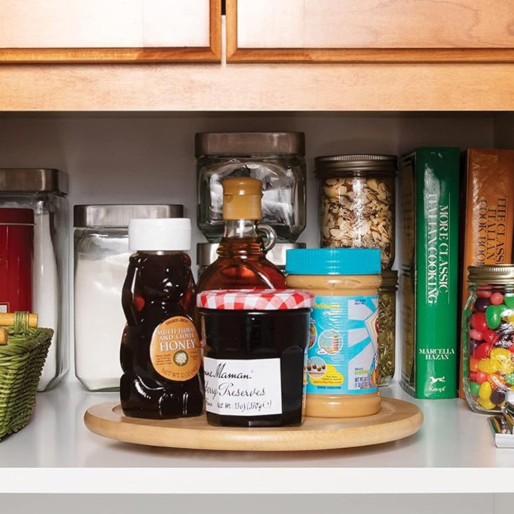 Bamboo Lazy Susan Turntable Rotating Organizer Tray Kitchen Spice Rack