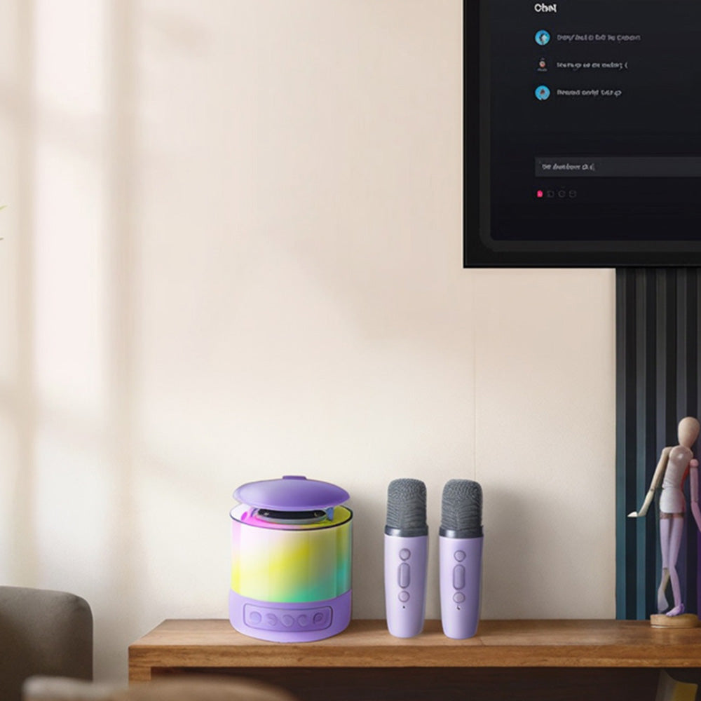Bluetooth Karaoke Machine with 2 Wireless Microphones Mini Singing Speaker with Colorful Light Purple