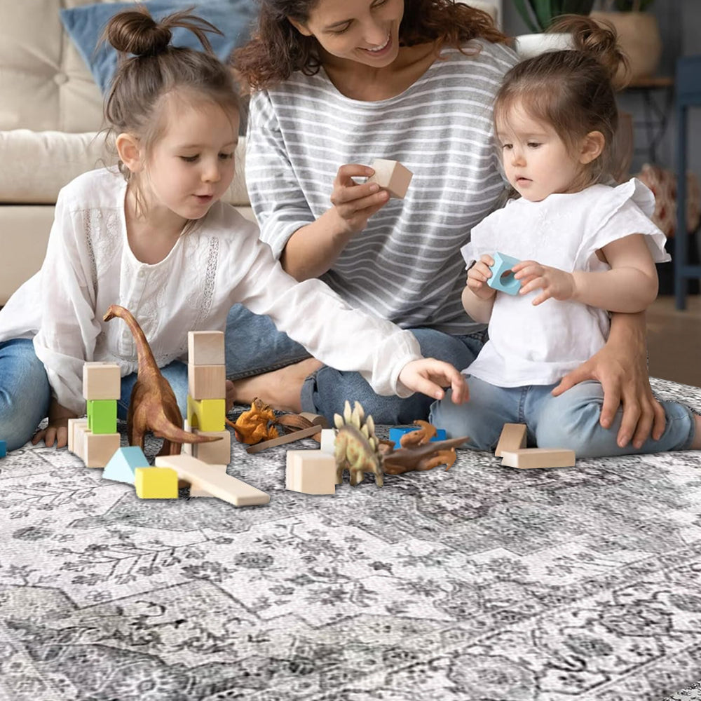 Bohemian Carpet Style Floor Mat Non-Slip Vintage Floor Protective Mat Grey