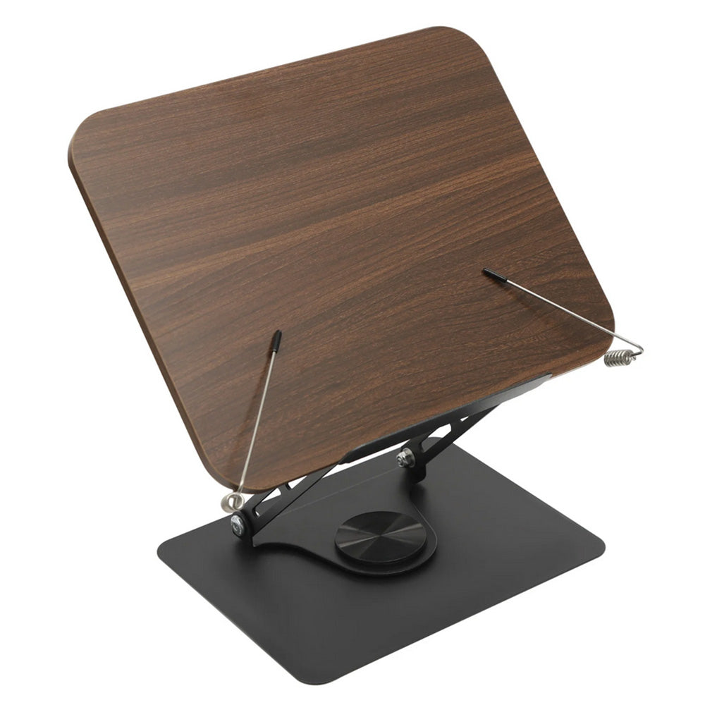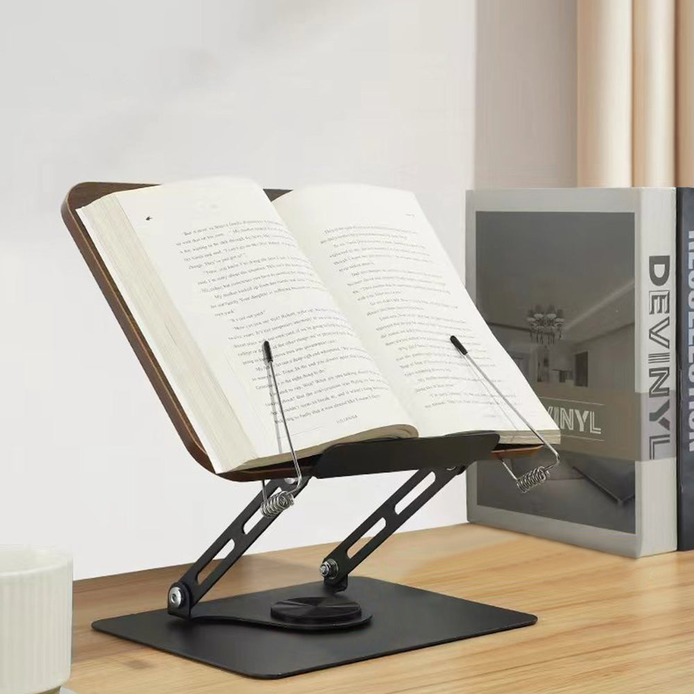 Book Stand with 360 Degrees Rotating Base for Reading Adjustable Book Holder with Elastic Clips Coffee