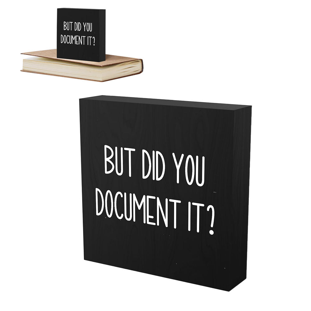 Elevate your workspace ambiance with the witty charm of the "But did you document it? " wooden box sign.