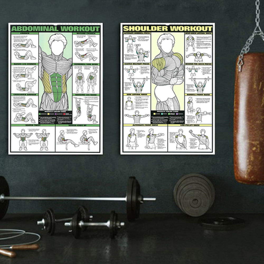 Canvas Gym Workout Poster Fitness Motivational Exercise Chart Style 1