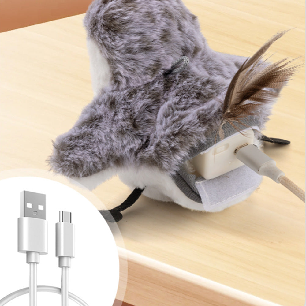 Cat Squeaky Toys Flapping Wing Interactive Cat Toy Rechargeable Touch Activated Kitten Plush Pet Toy