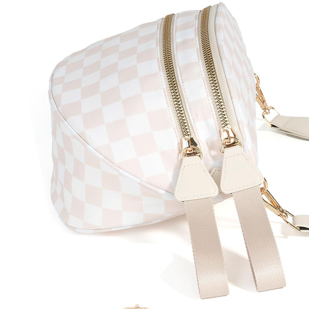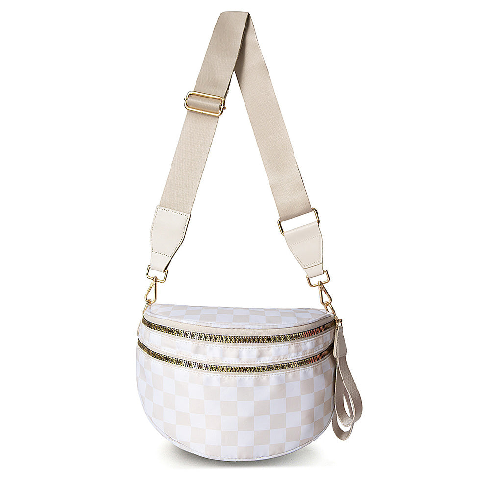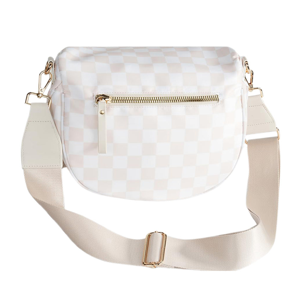 Checkered Crossbody Bag Women Sling Bag with Adjusatble Shoulder Strap Beige