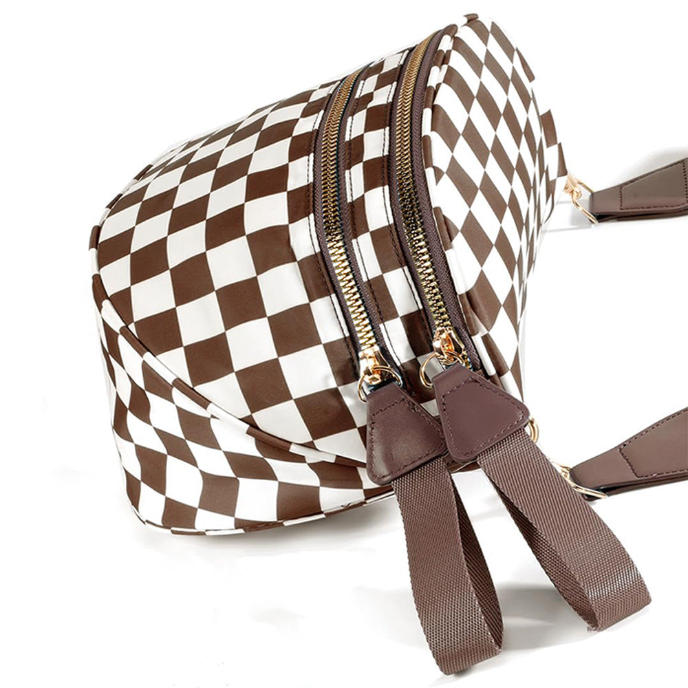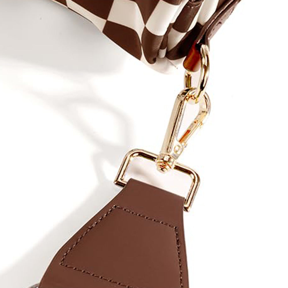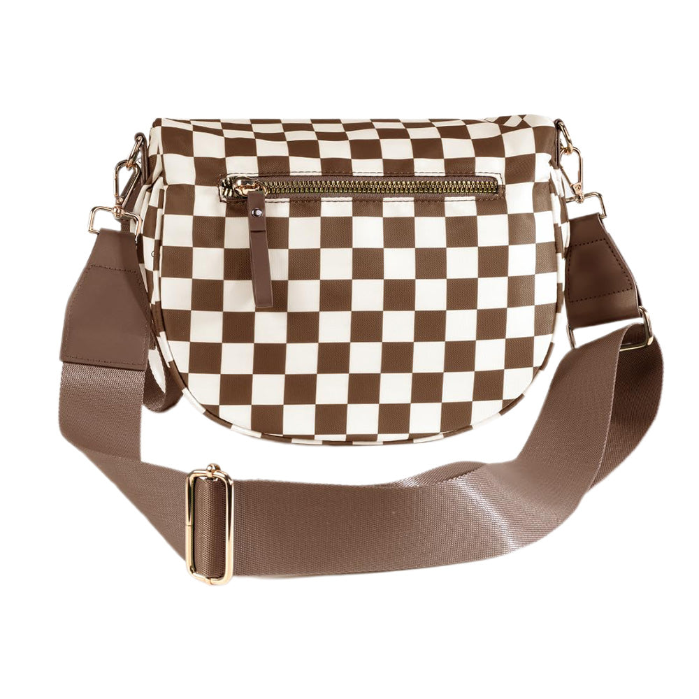 Checkered Crossbody Bag Women Sling Bag with Adjusatble Shoulder Strap Brown