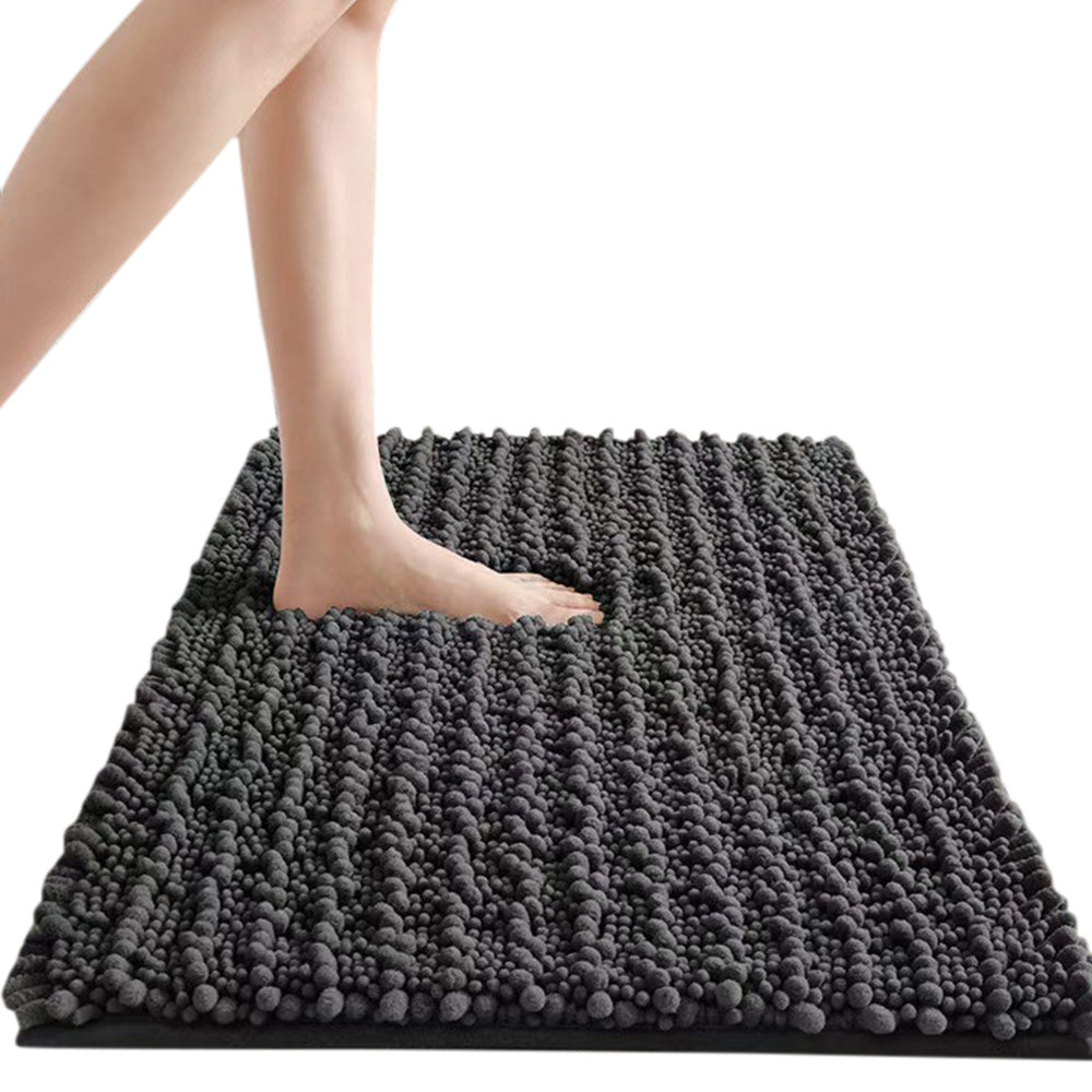 Chenille Fabric Bathroom Rugs Mat With Non Slip Rubber Backing Home Decor Accessories-Grey