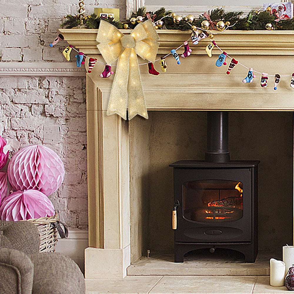 Christmas Bows Light Up Large Double Layer Ribbon Bow Xmas Door Decoration Home Decor-Gold