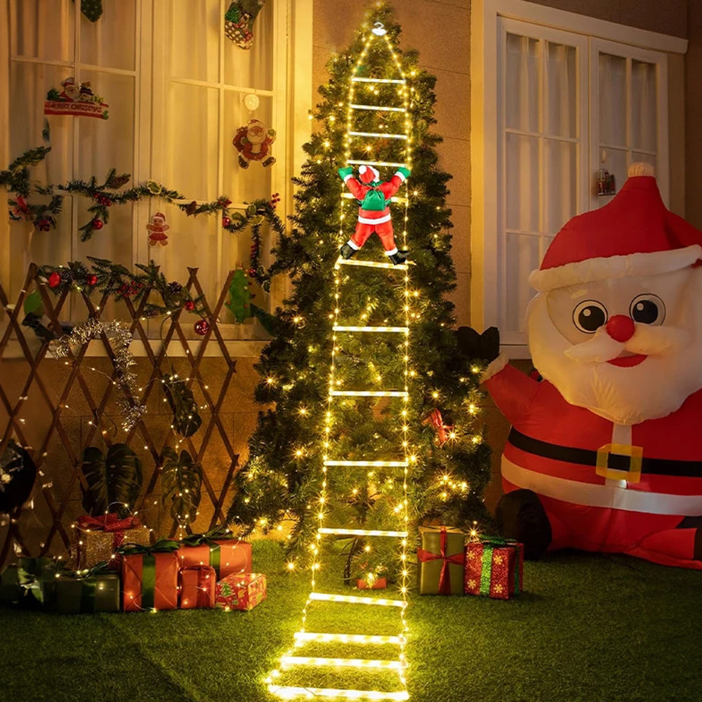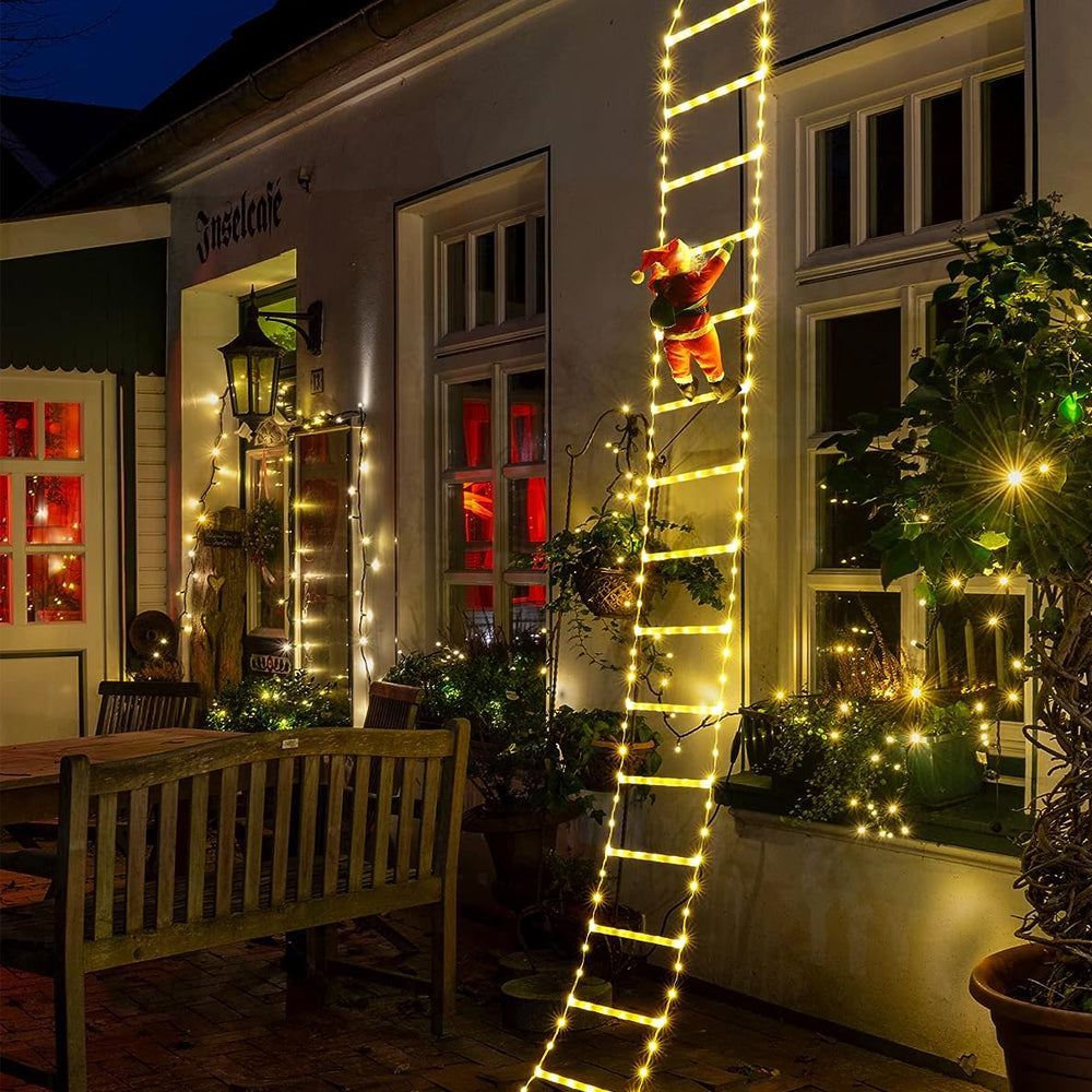 Christmas Decorative Ladder Lights with Santa Claus Xmas Party Decorations for Indoor Outdoor Warm