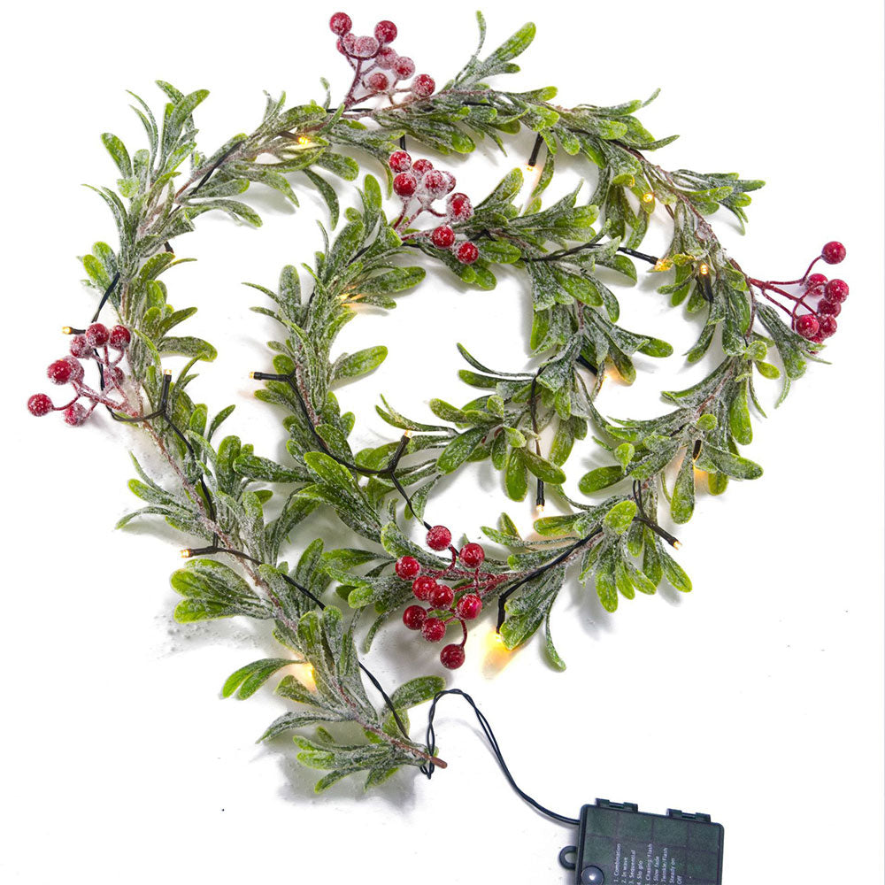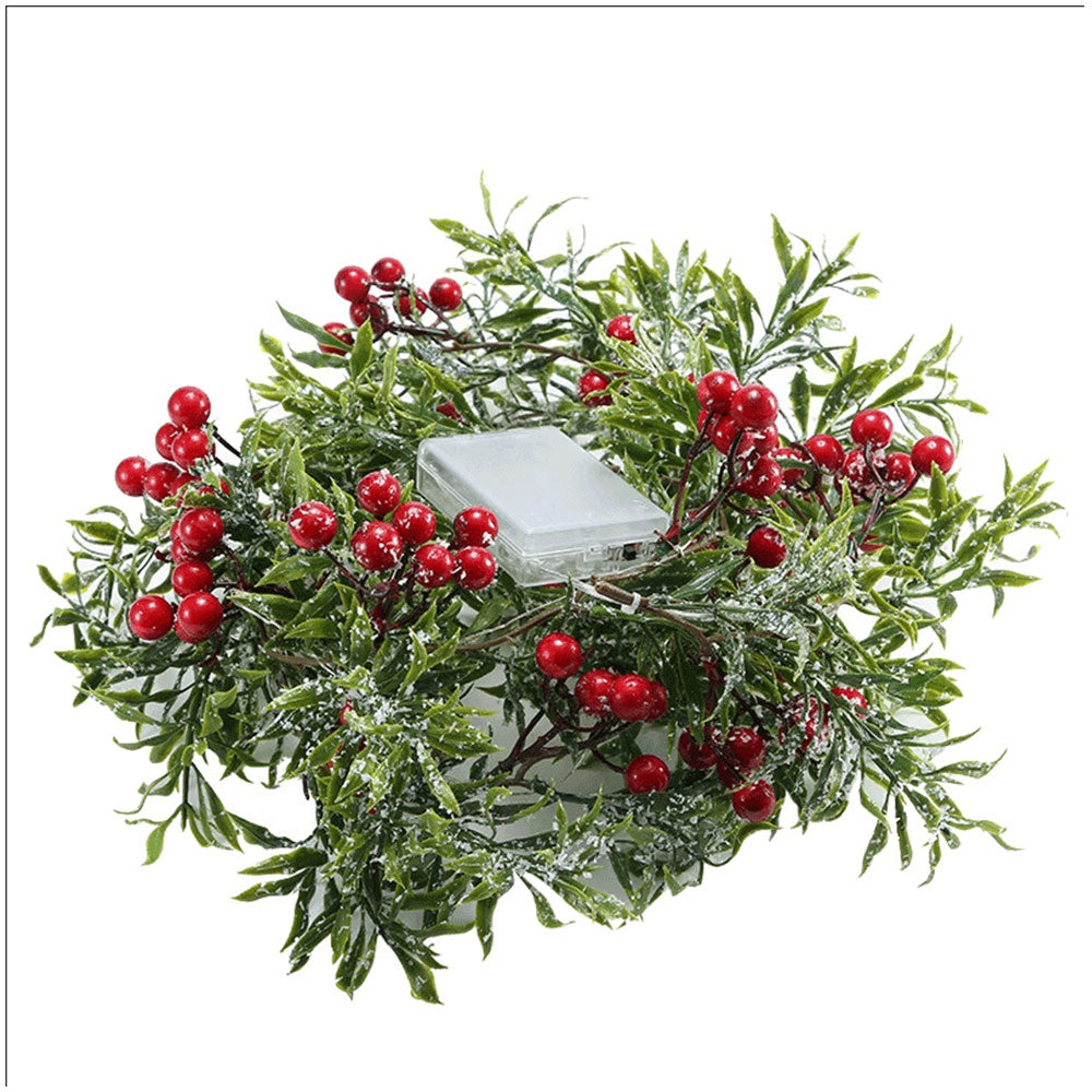 The Christmas mistletoe rattan features artificial mistletoe leaves and berries, accented with a string of lights, creating a festive and cozy atmosphere for your holiday decorations.