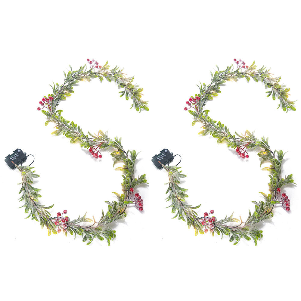 2Pcs Christmas Mistletoe Rattan String Light Artificial Flower Garland Xmas Holiday Decor Red