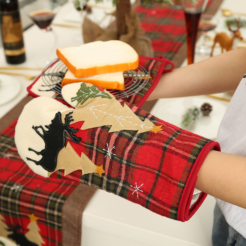 Christmas Oven Mitt Pot Holder Set Reusable Kitchen Heat Insulation Pad Microwave Gloves