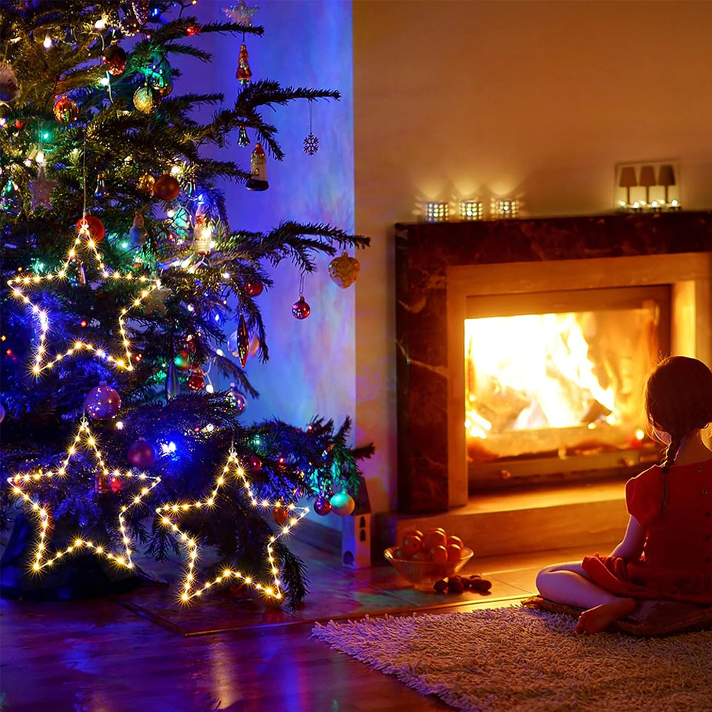 Christmas Window Star String Lights Waterproof Outdoor Patio Lights Decor for Tree Garden Backyard-Warm white
