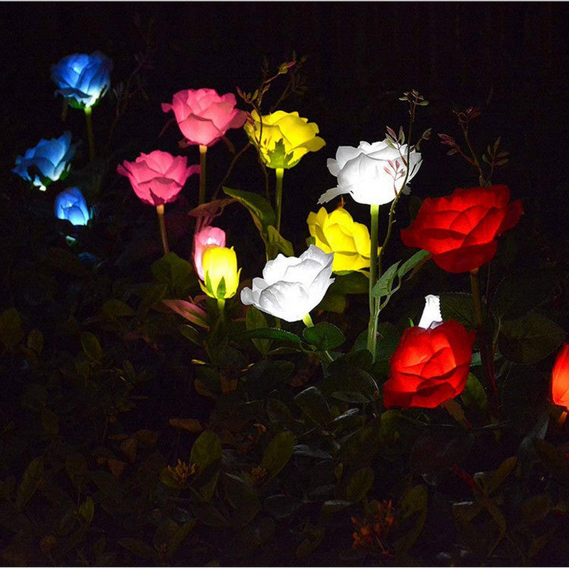 5 Pack 3LED 3Heads Solar Powered Garden Decorations Lights Simulation Rose Flower Decoration Lamp for Backyard Garden