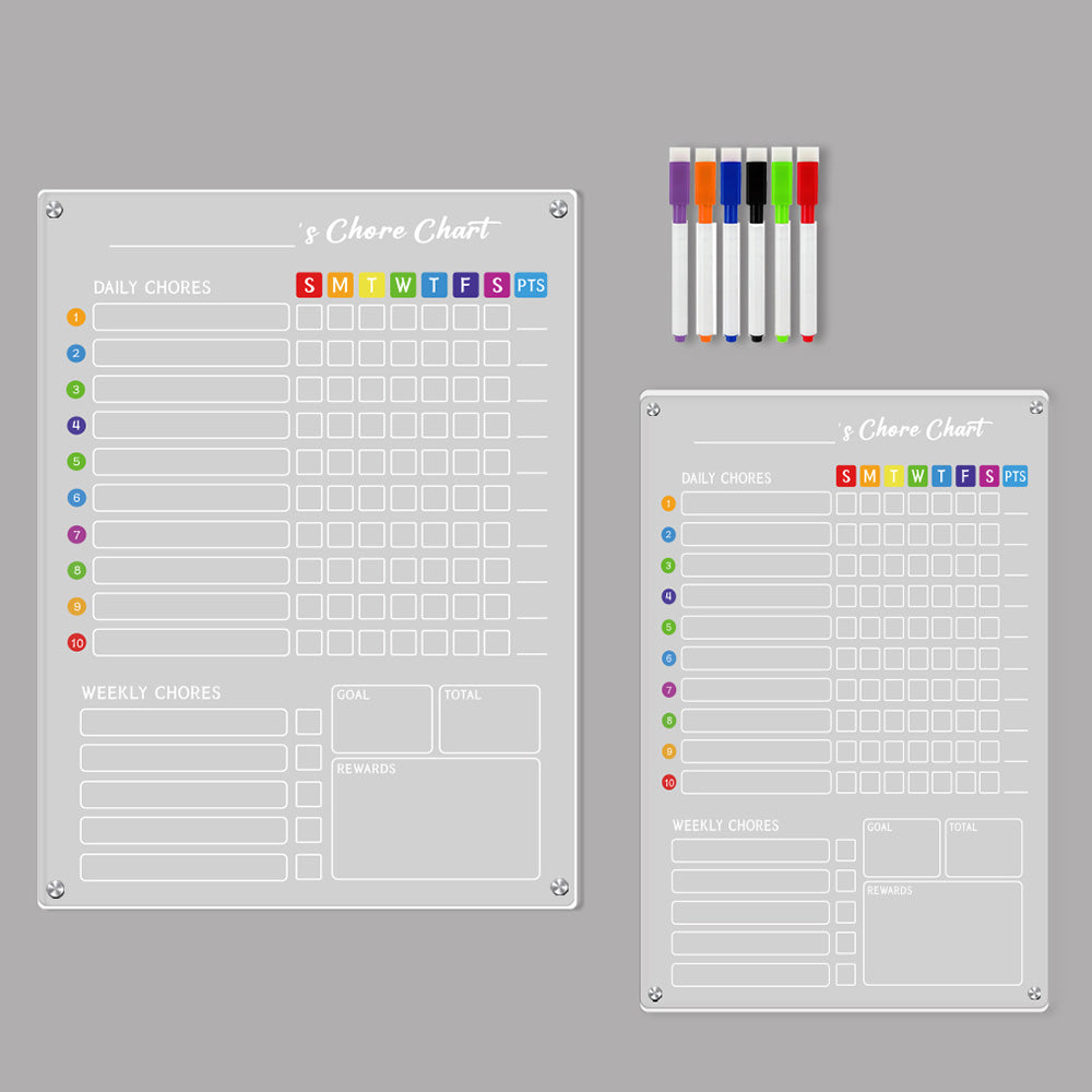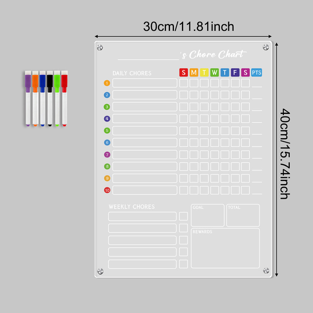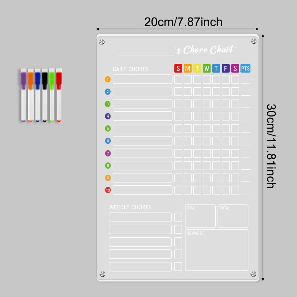 Clear Acrylic Chore Chart Board Kit for Kids Dry Erase Checklist Family Reward Responsibility Chart