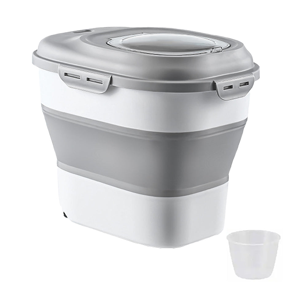 Collapsible Pet Food Storage Container Dog Cat Dry Food Container with Lid Grey