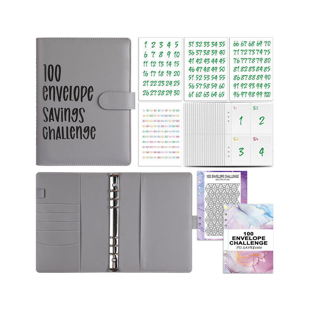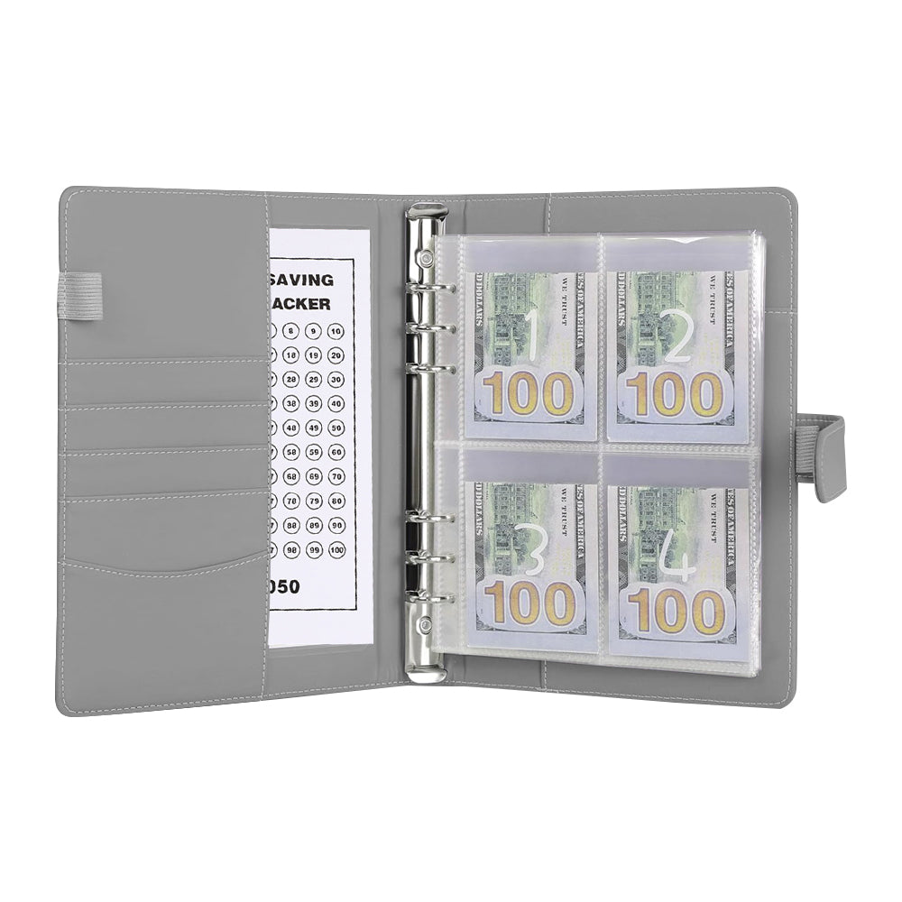100 Envelope Challenge Binder Budget Planner Savings Book with 200 Card Slots Grey