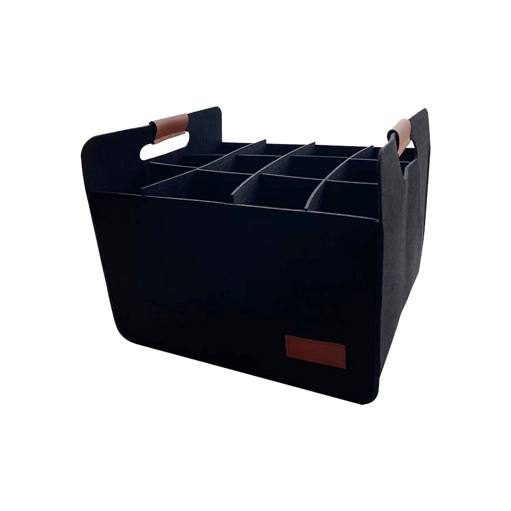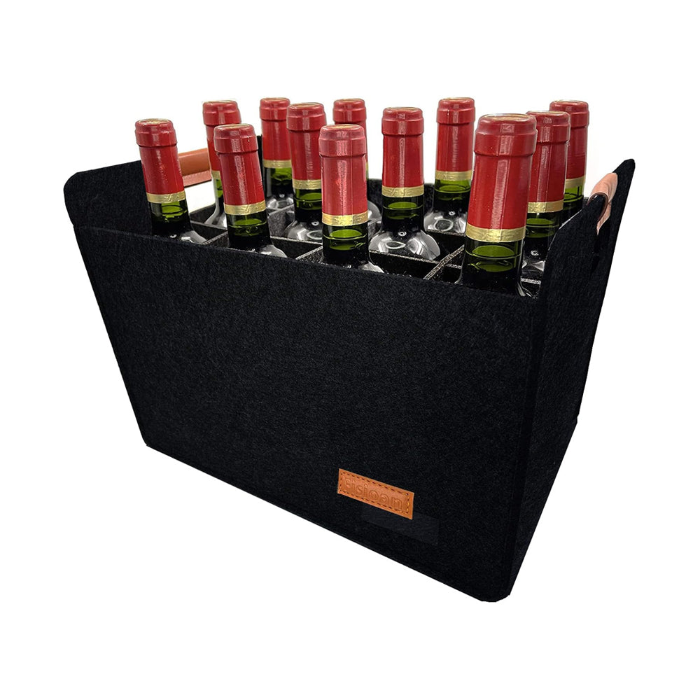 The wine tote bag has 12 compartments and the sturdy handle, allows you bring your bottles or glasses to and from dinner parties or outings.