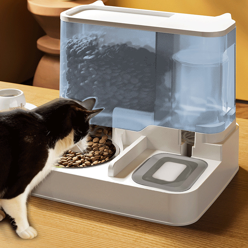 This gravity cat feeder and water dispenser utilizes a natural gravity water supply and feeding system, providing a friendly solution for convenient and straightforward pet feeding.