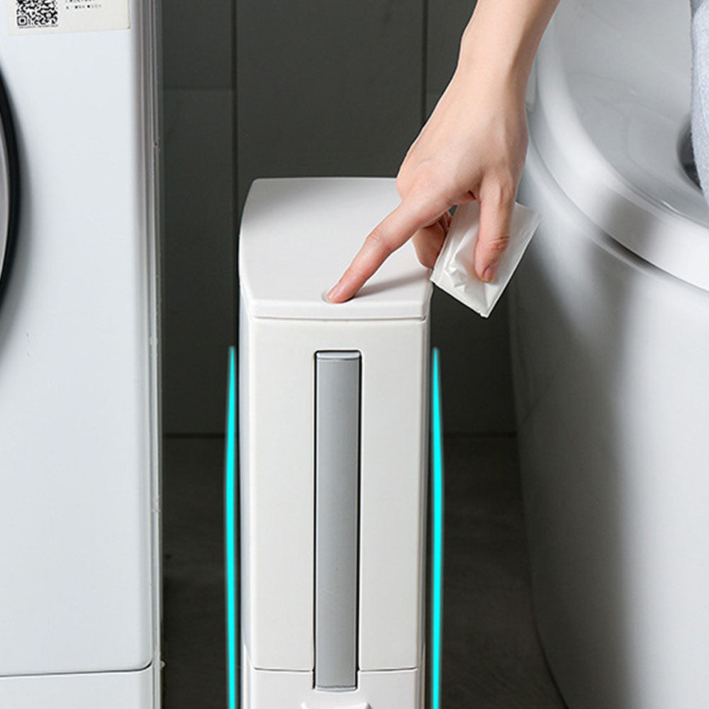 Optimize your space with our 2-in-1 narrow plastic trash can set featuring a toilet brush, specially designed for compact bathroom spaces.