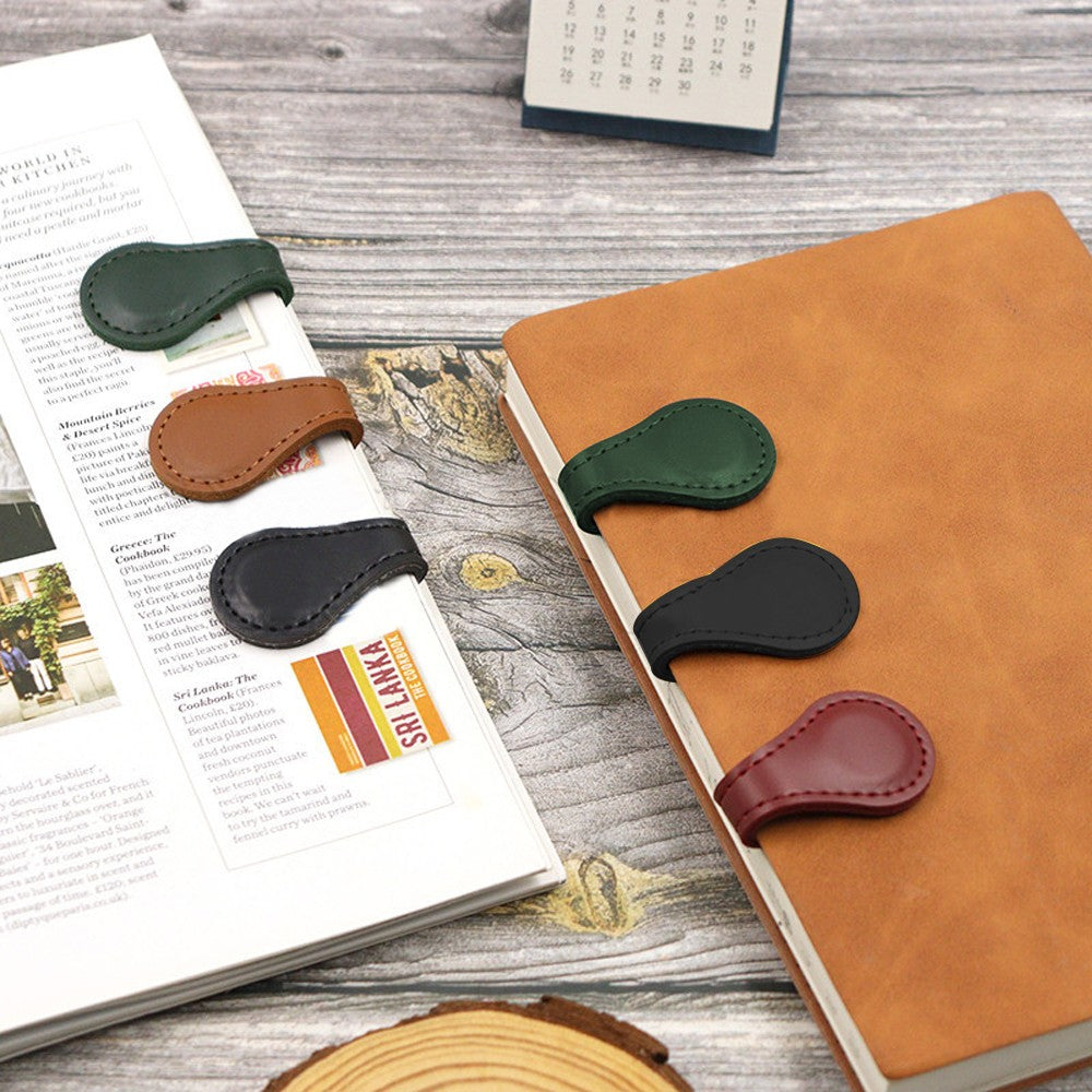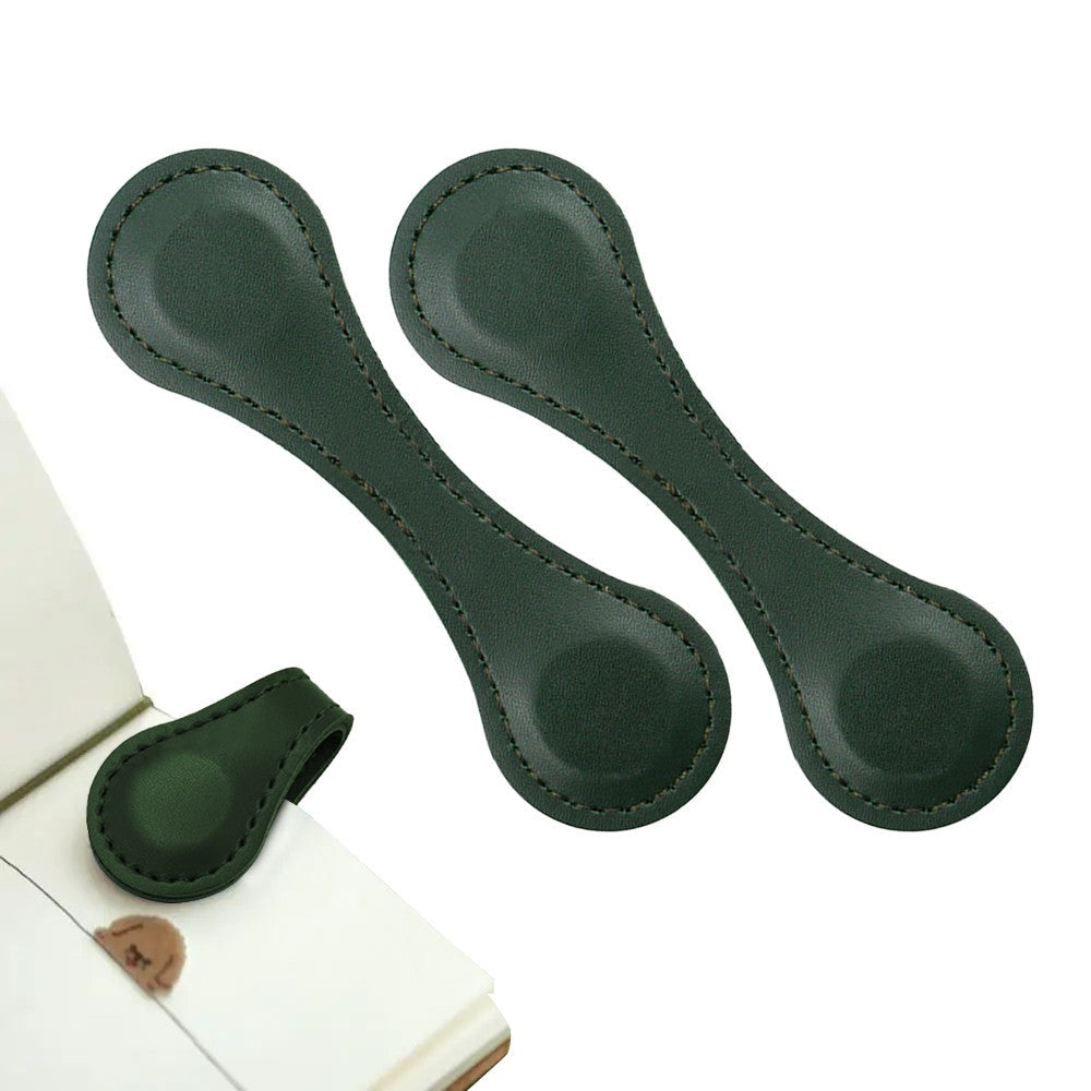 2Pcs Dual-side Magnetic Bookmark PU Leather Bookmark Green