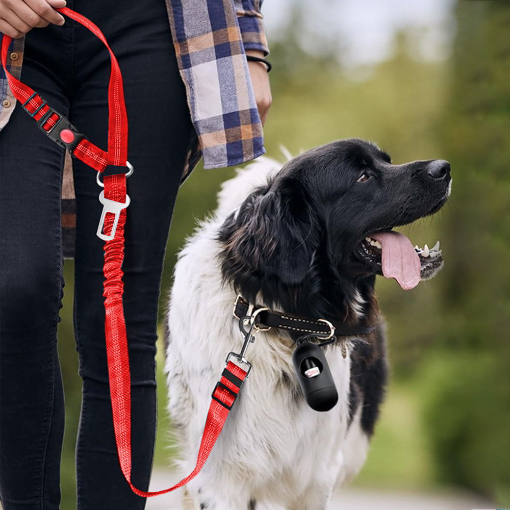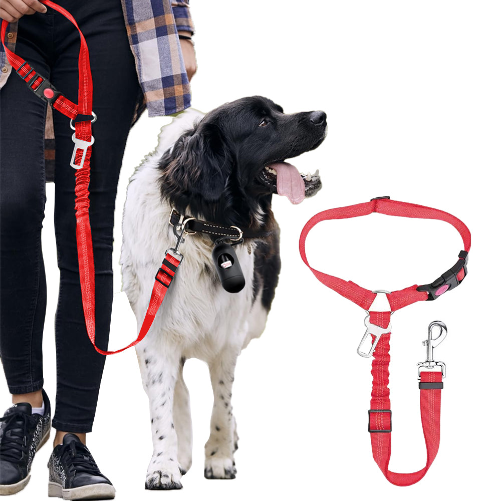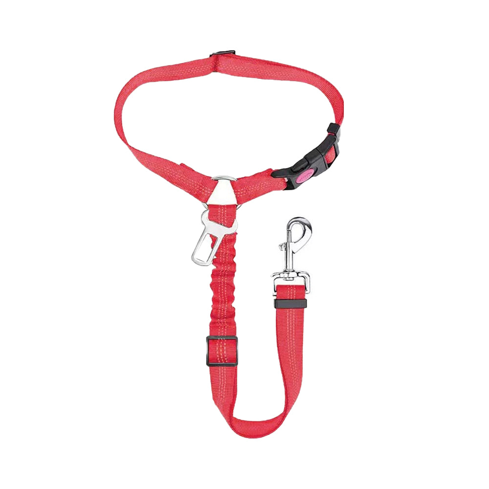 3-in-1 Removable Dog Seat Belt Harness for Car Retractable Reflective Bungee Dog Seatbelt Red