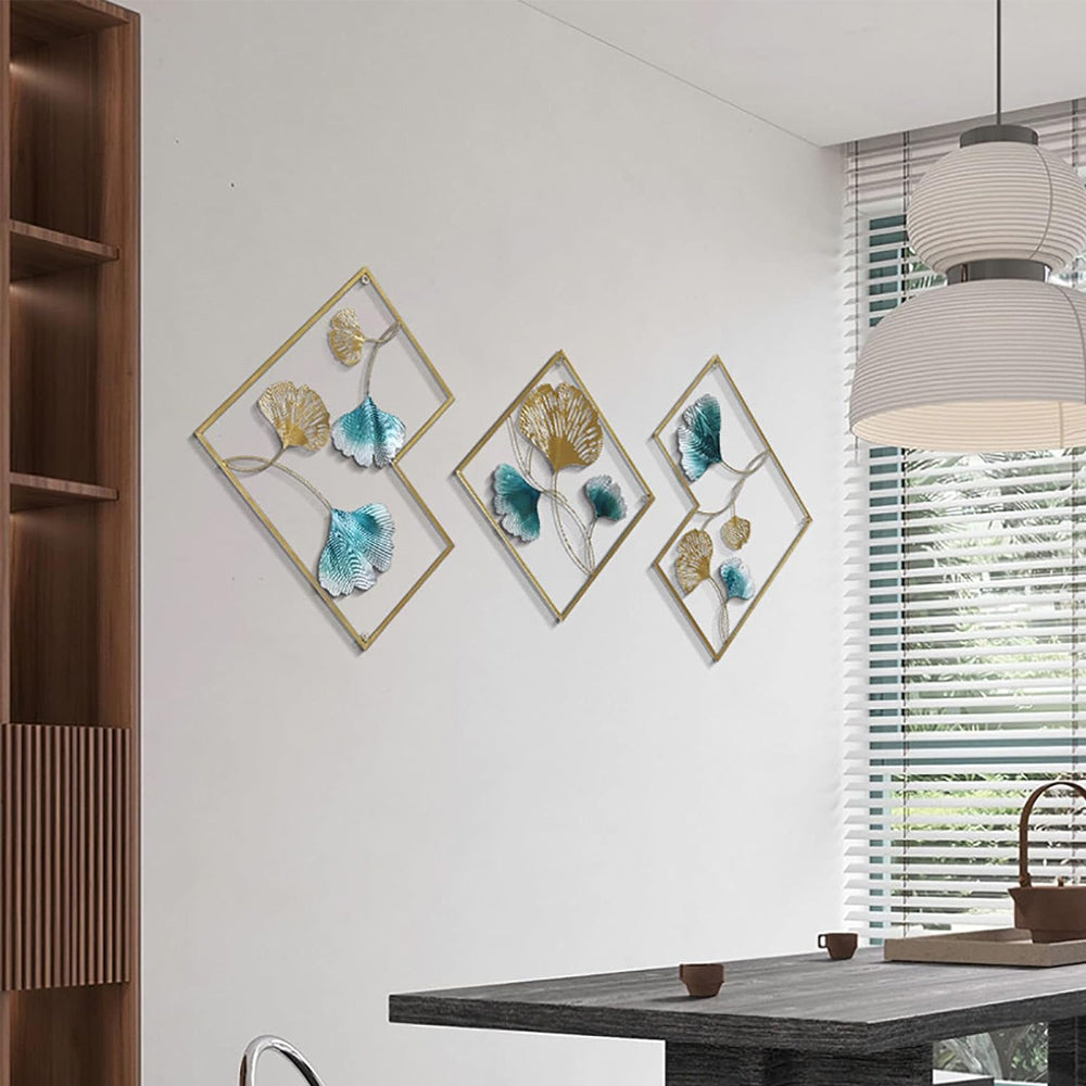 - A set contains 3 ginkgo leaf wall decorations in different styles.