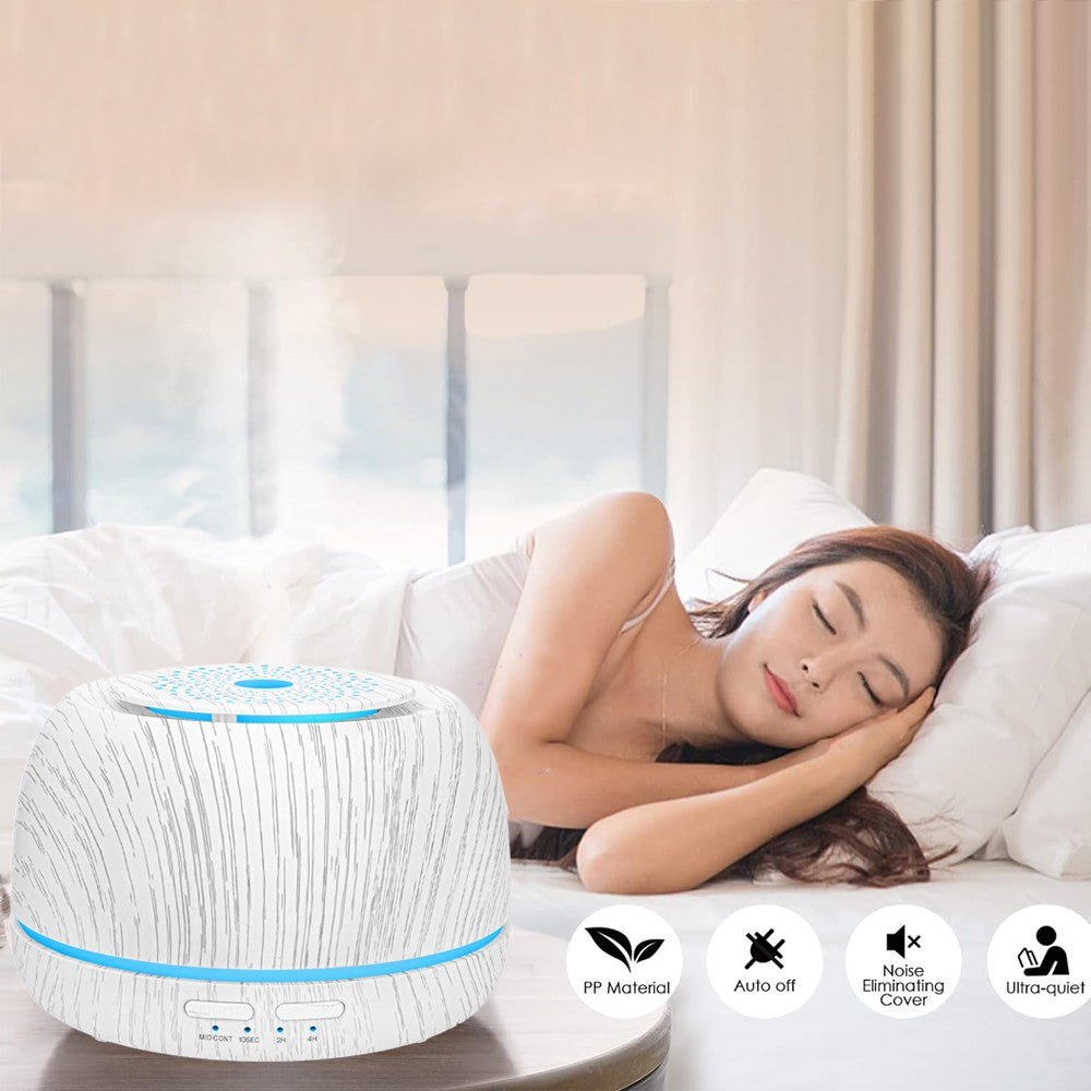 - The diffuser offers 7 colors of light, each with two intensity settings (bright and dim), providing a choice of different light mode combinations to enhance a soothing atmosphere.