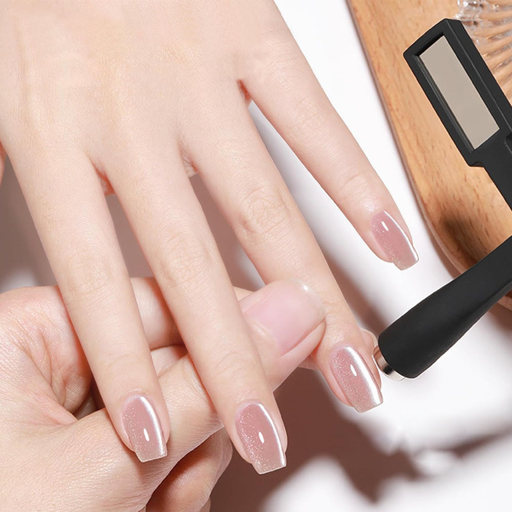 - It is easy to use that the first step is to apply cat's eye gel nail polish, and then apply the magnet to the nail for 10-15 seconds to achieve the cat's eye effect (place the magnet side towards the nail, but do not touch the nail surface). Finally, immediately shine ultraviolet light for 2 minutes or LED light for 60 seconds.