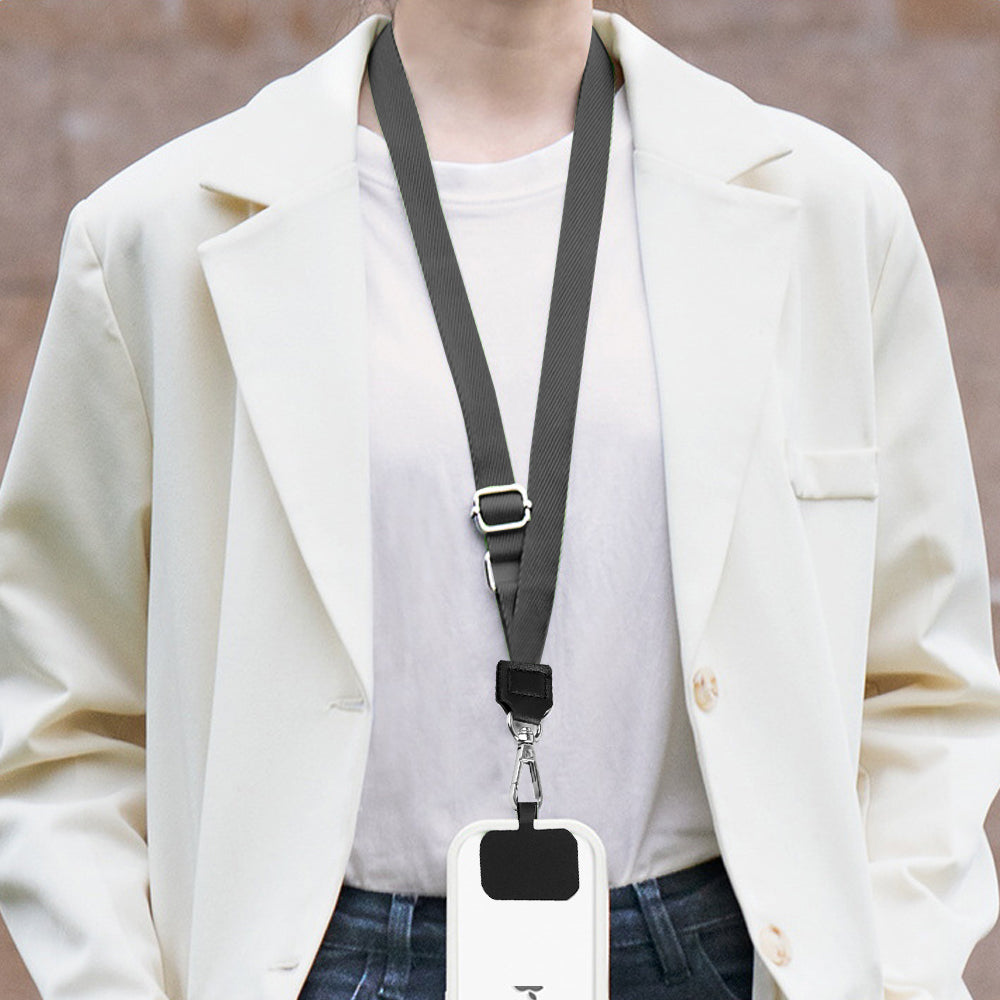 This versatile phone lanyard with an adjustable crossbody strap and spacer, provides a secure and hands-free solution to prevent loss.