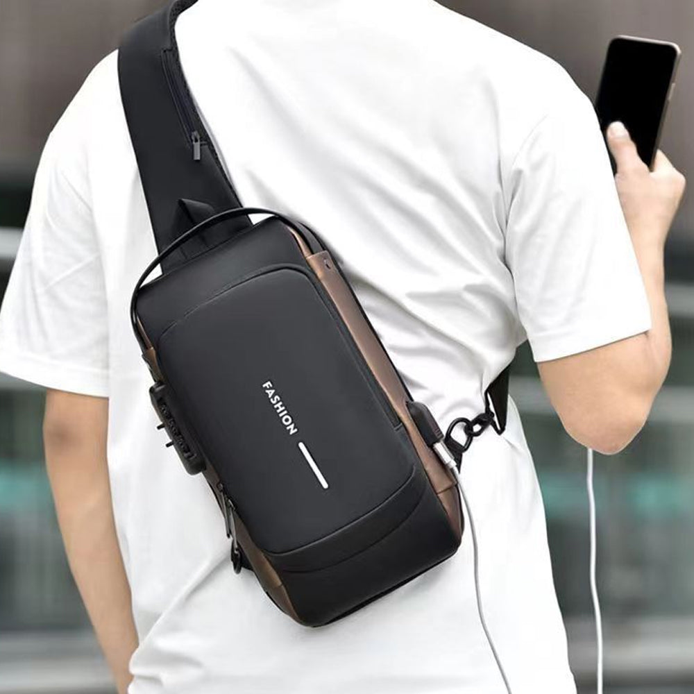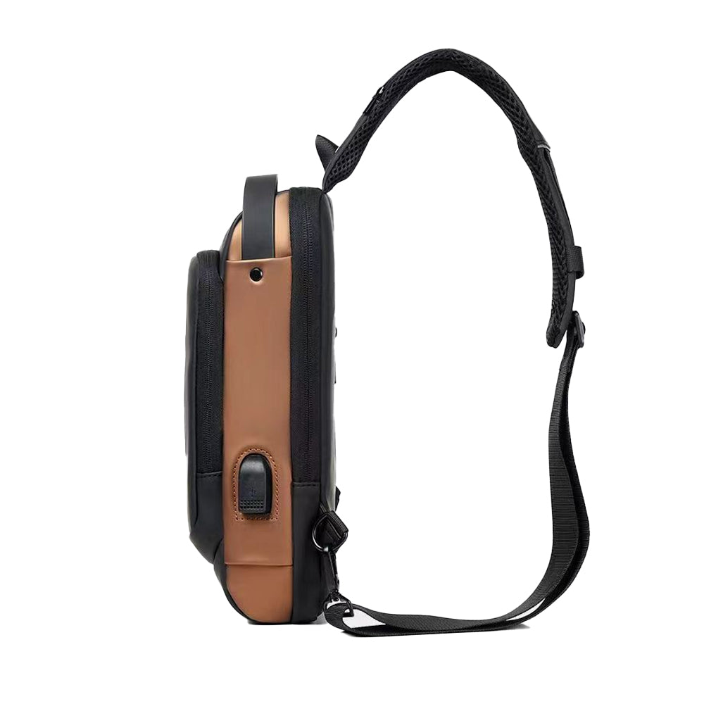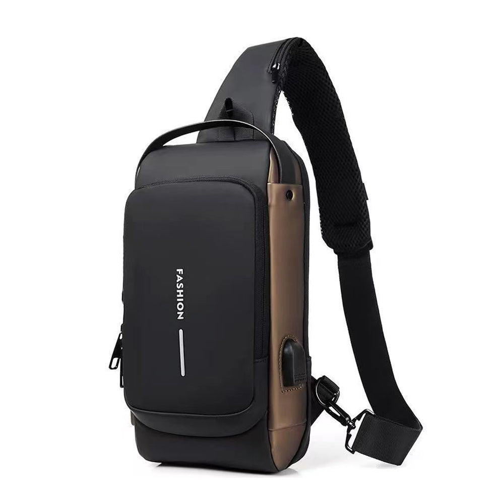 Anti theft Crossbody Sling Bag with USB Port Water-Resistant Sport Chest Bag Shoulder Bag Brown