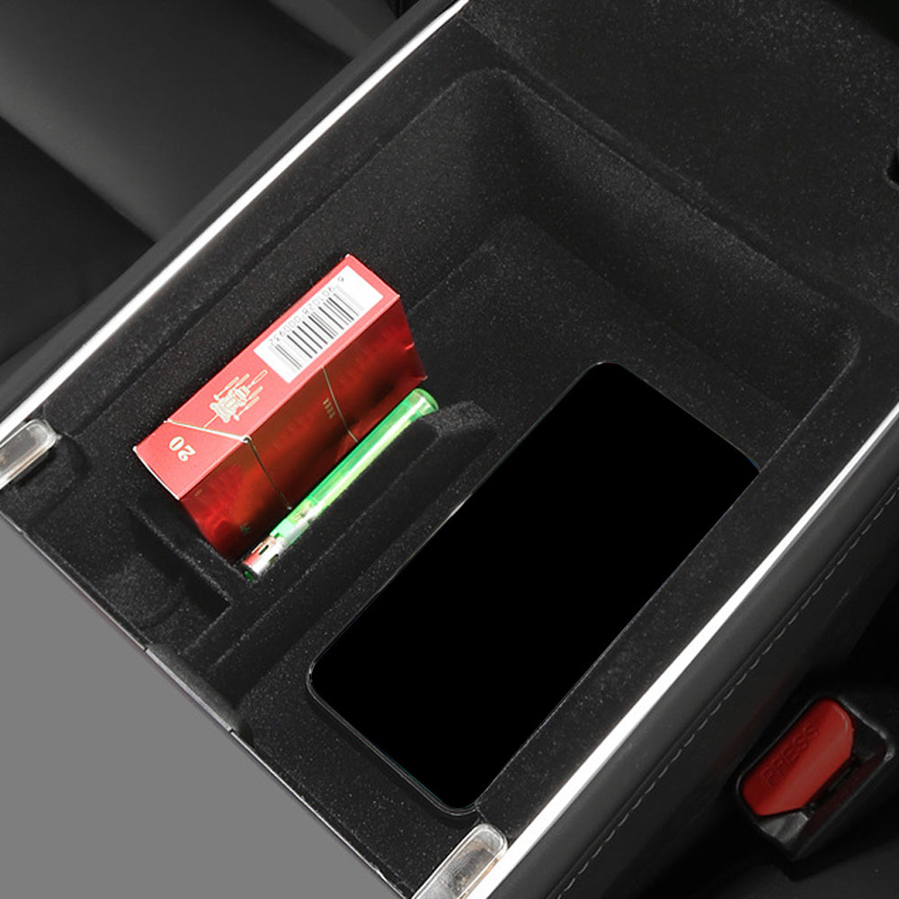Flocked Rear Center Console Organizer Tray for Tesla Model 3/Y