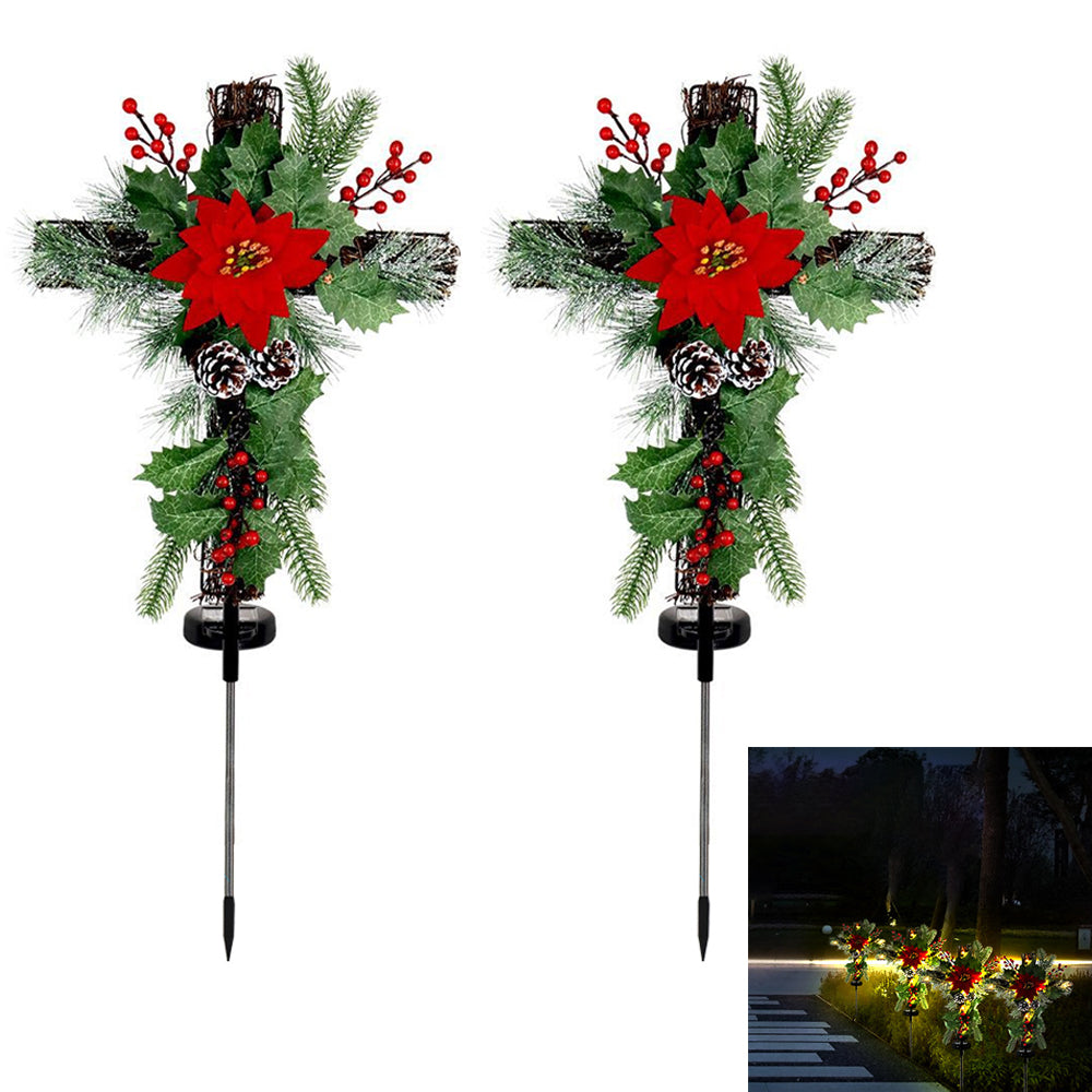 2Pcs Christmas Tree Solar Light Ground Light Patio Walkway Lamp Outdoor Garden Decor