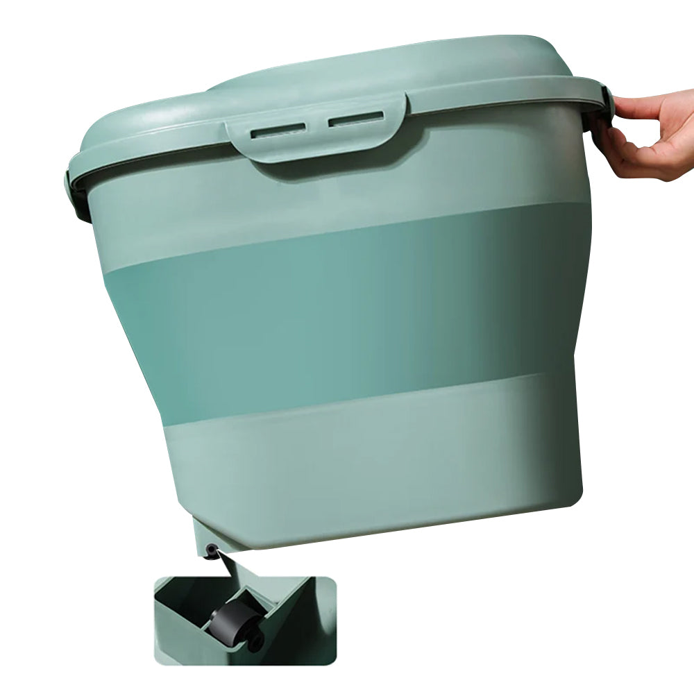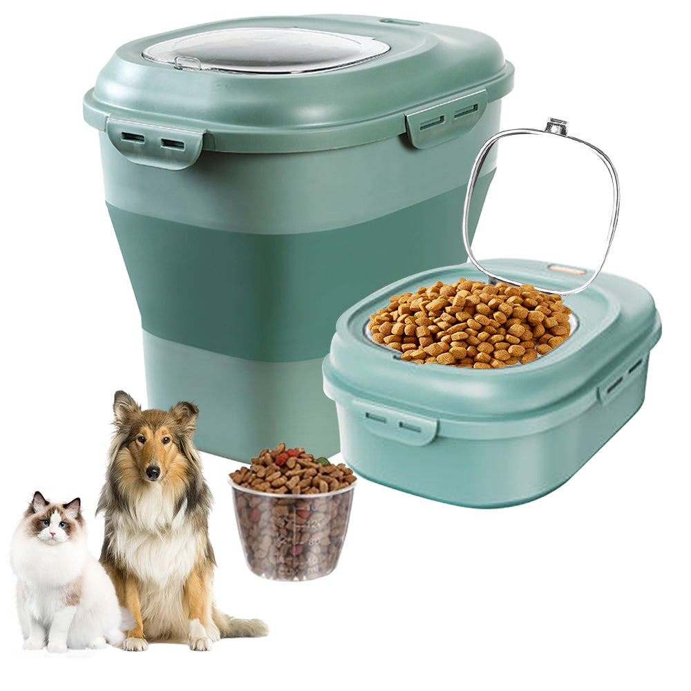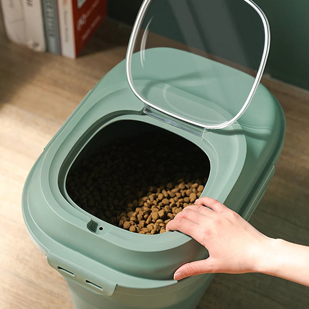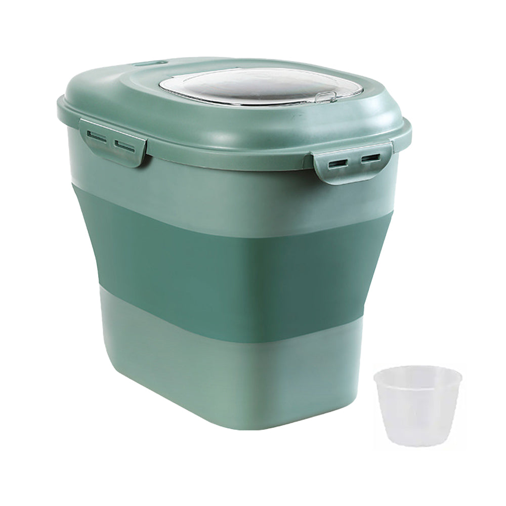 Collapsible Pet Food Storage Container Dog Cat Dry Food Container with Lid Green
