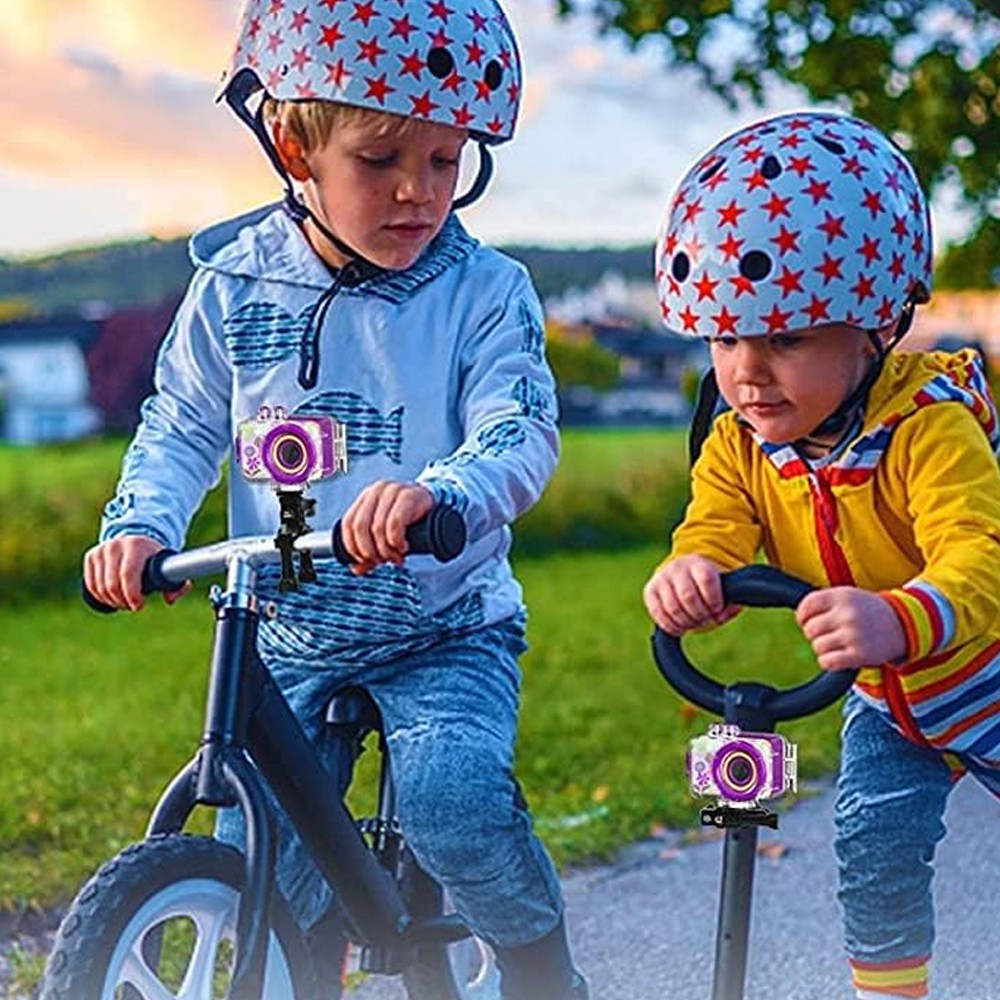 This camera is equipped with a waterproof case, a helmet mount and a bicycle mount, children can use the camera to capture amazing pictures in swimming, surfing, biking, skateboarding and other outdoor activities.