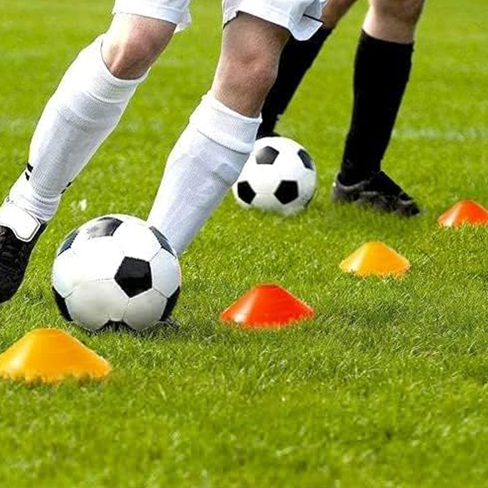 - With football cones for a variety of exercises that can be used to set obstacles in various patterns, or as boundary markers and goals.