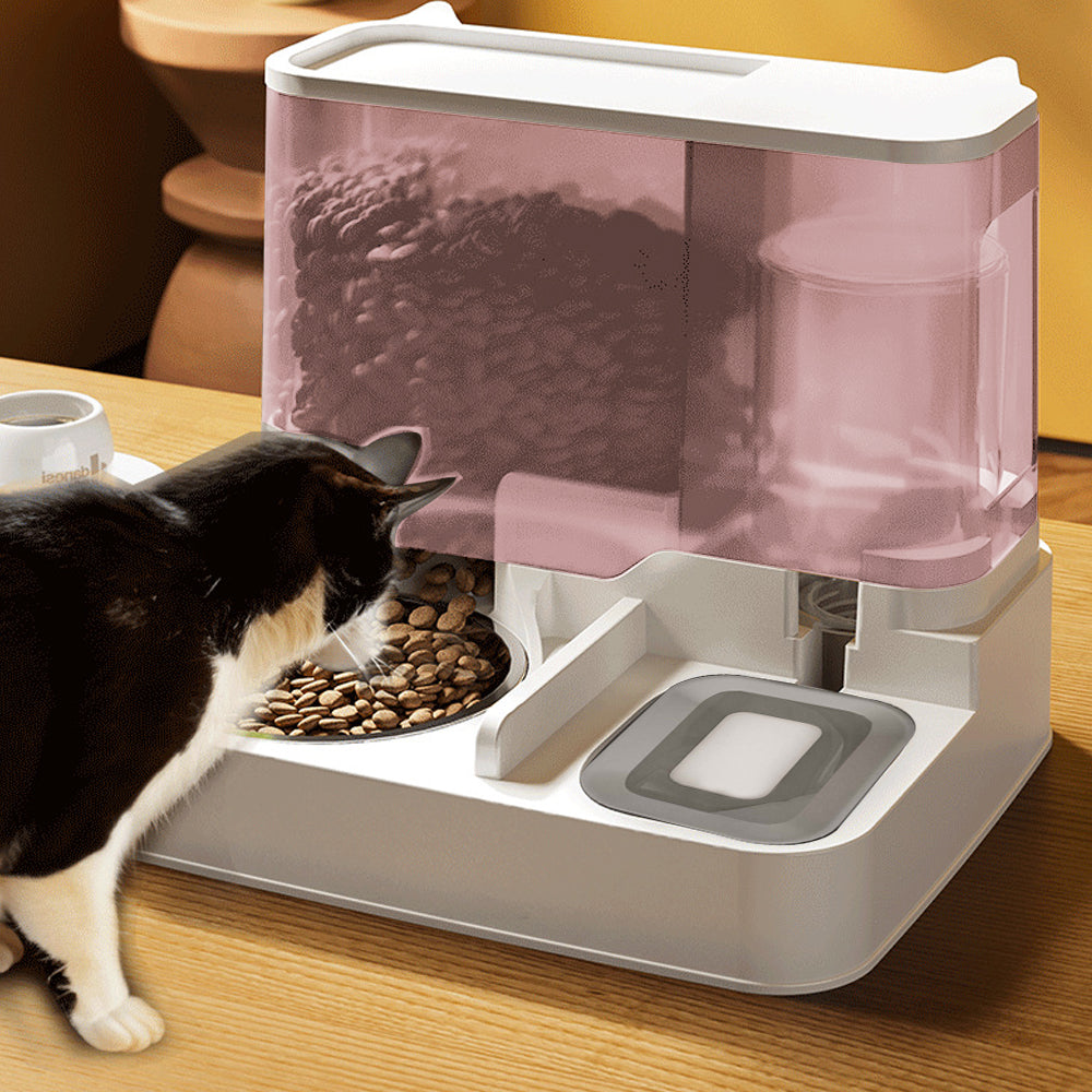 2-in-1 Pet Automatic Feeder Food Water Dispenser Pets Auto Feeder Pink